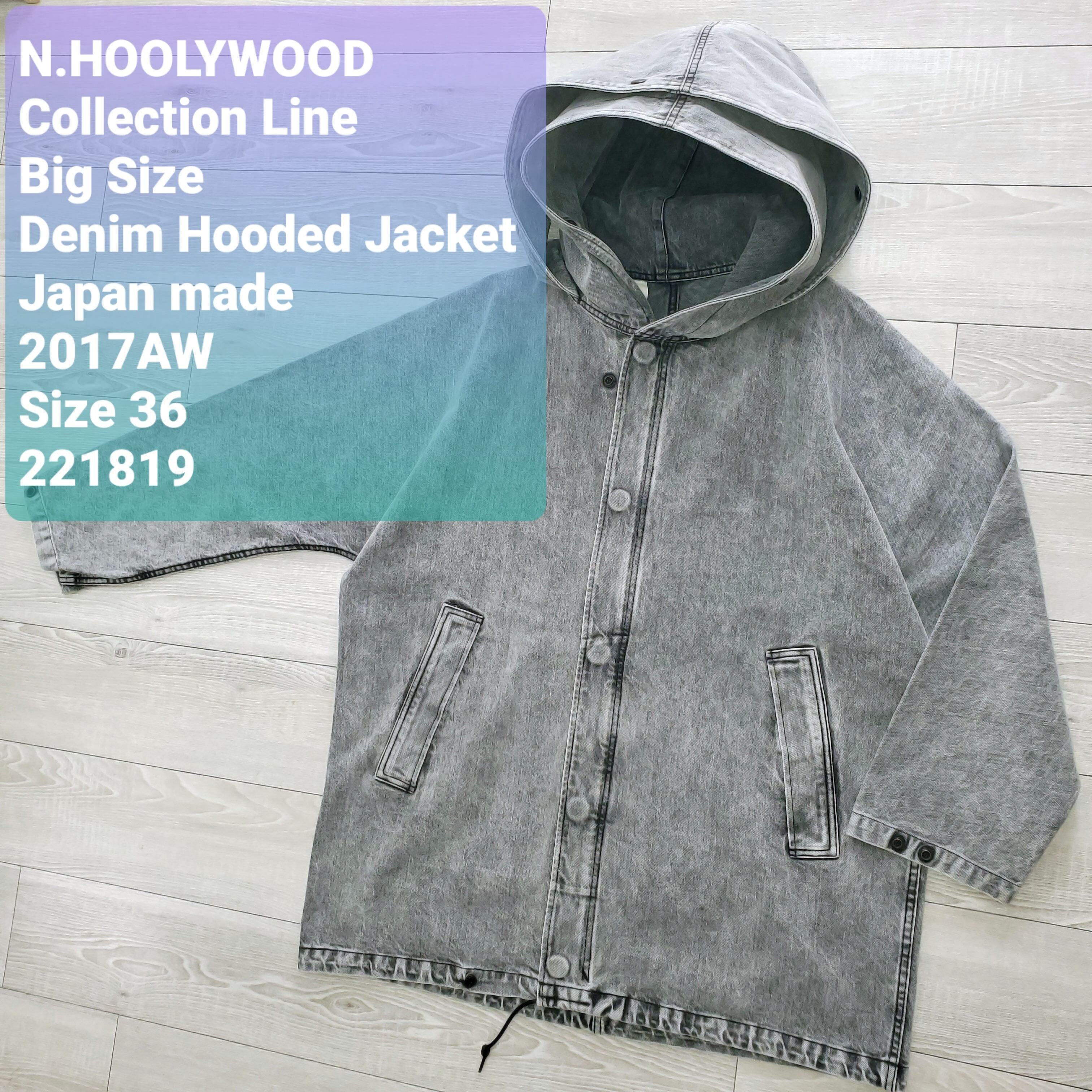 N.HOOLYWOODエヌハリウッド■良品 2017AW 日本製 Collection Line ビックサイズ ブラックデニム フードブルゾン 36 モッズコート 定価72600 No221819