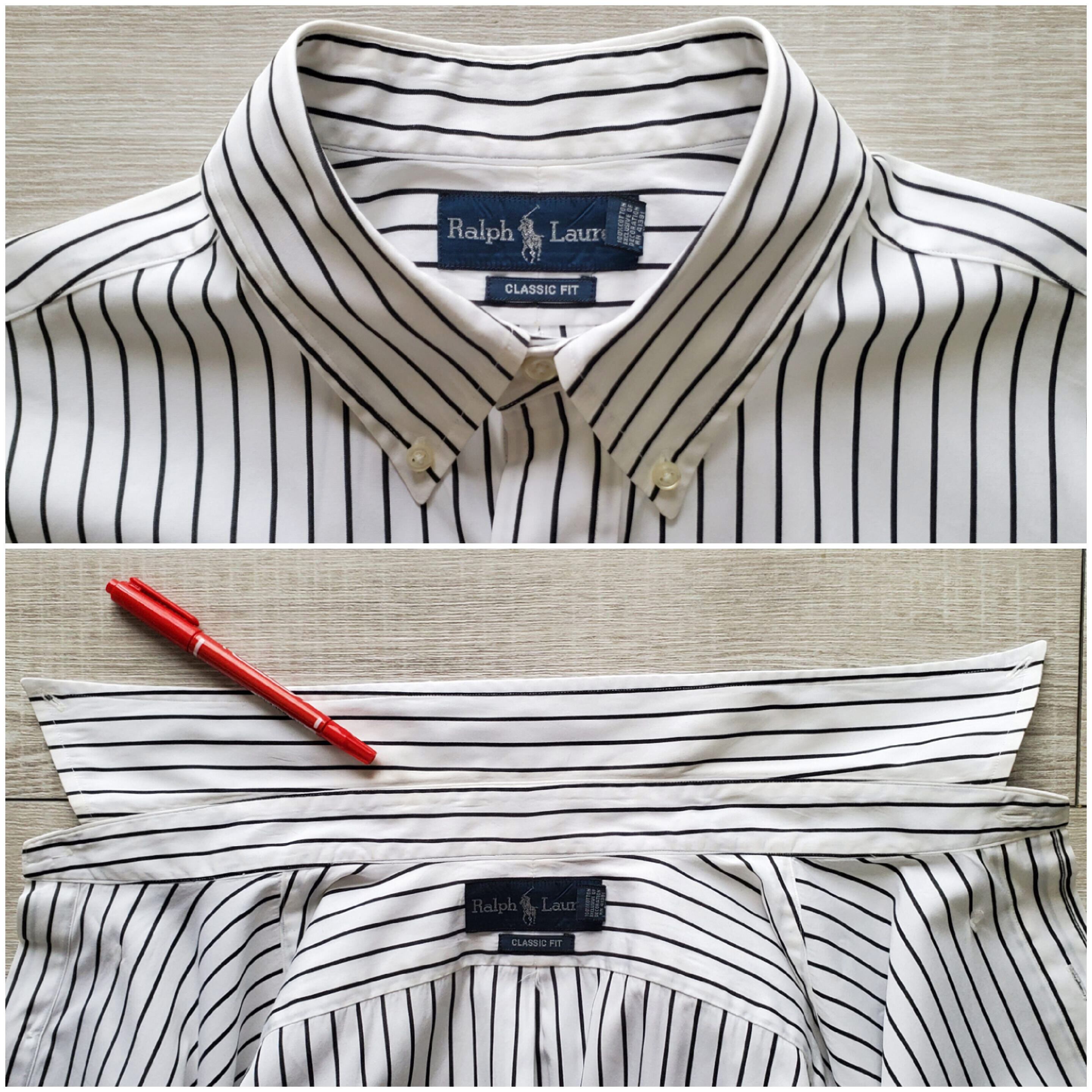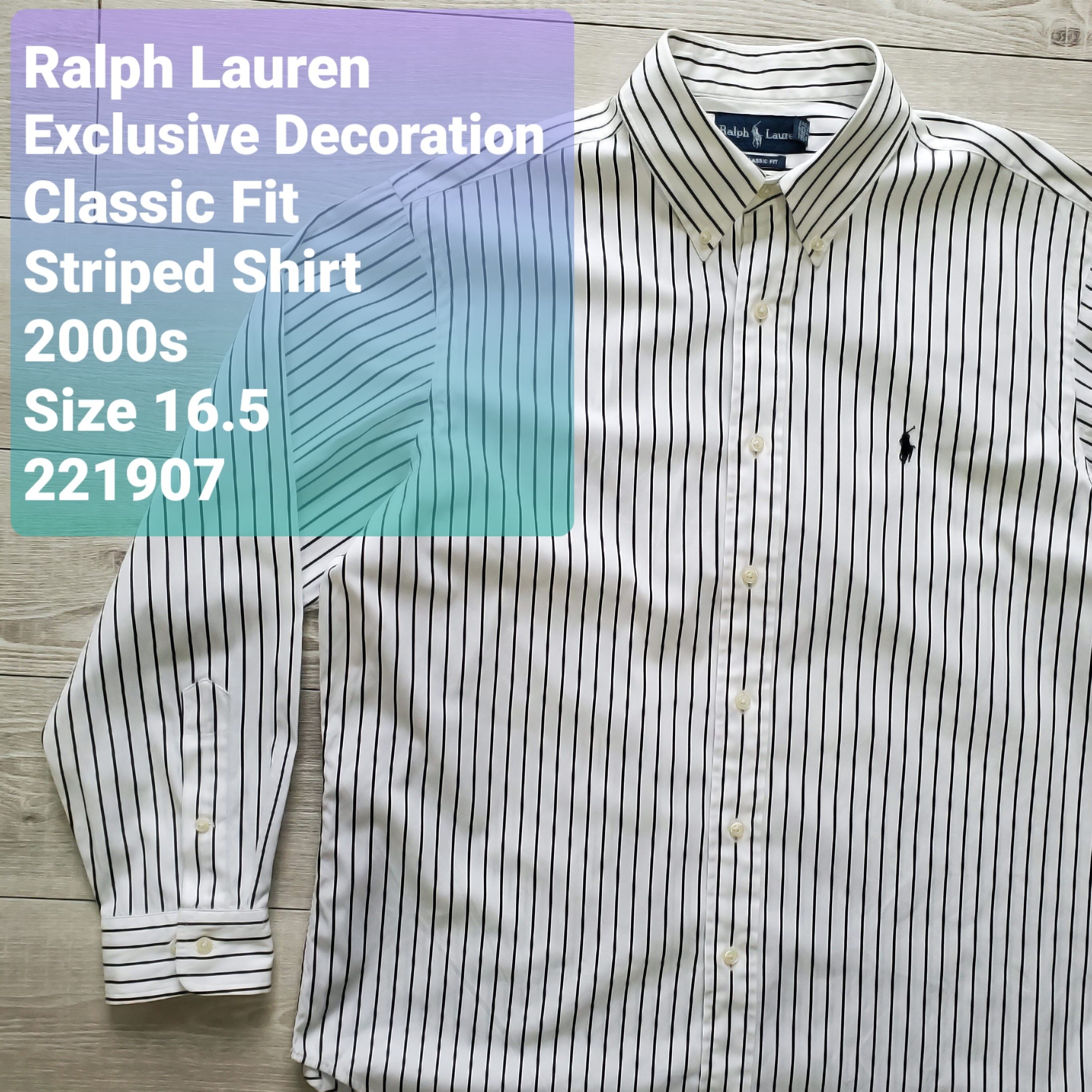 送料無料 Ralph lauren ラルフローレン■良品 2000s Exclusive of decoration 長袖 CLASSIC FIT ストライプ ドレスシャツ 16 1/2 白×黒 M相当 クラシックフィット ビッグシルエット No221907
