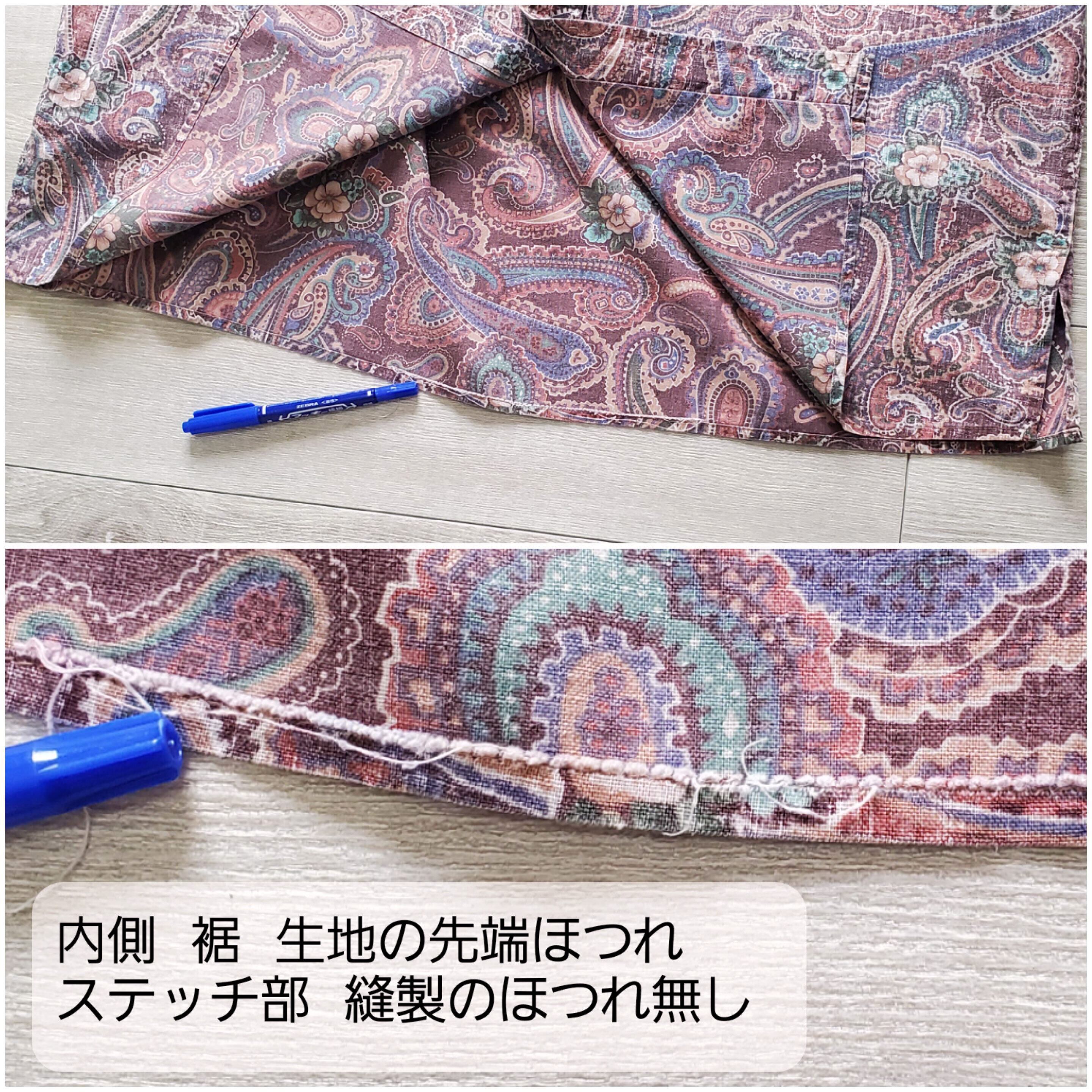 ・内側裾の生地の先端にスレがございますが、縫製部にダメージはなく問題なくご使用頂けます。