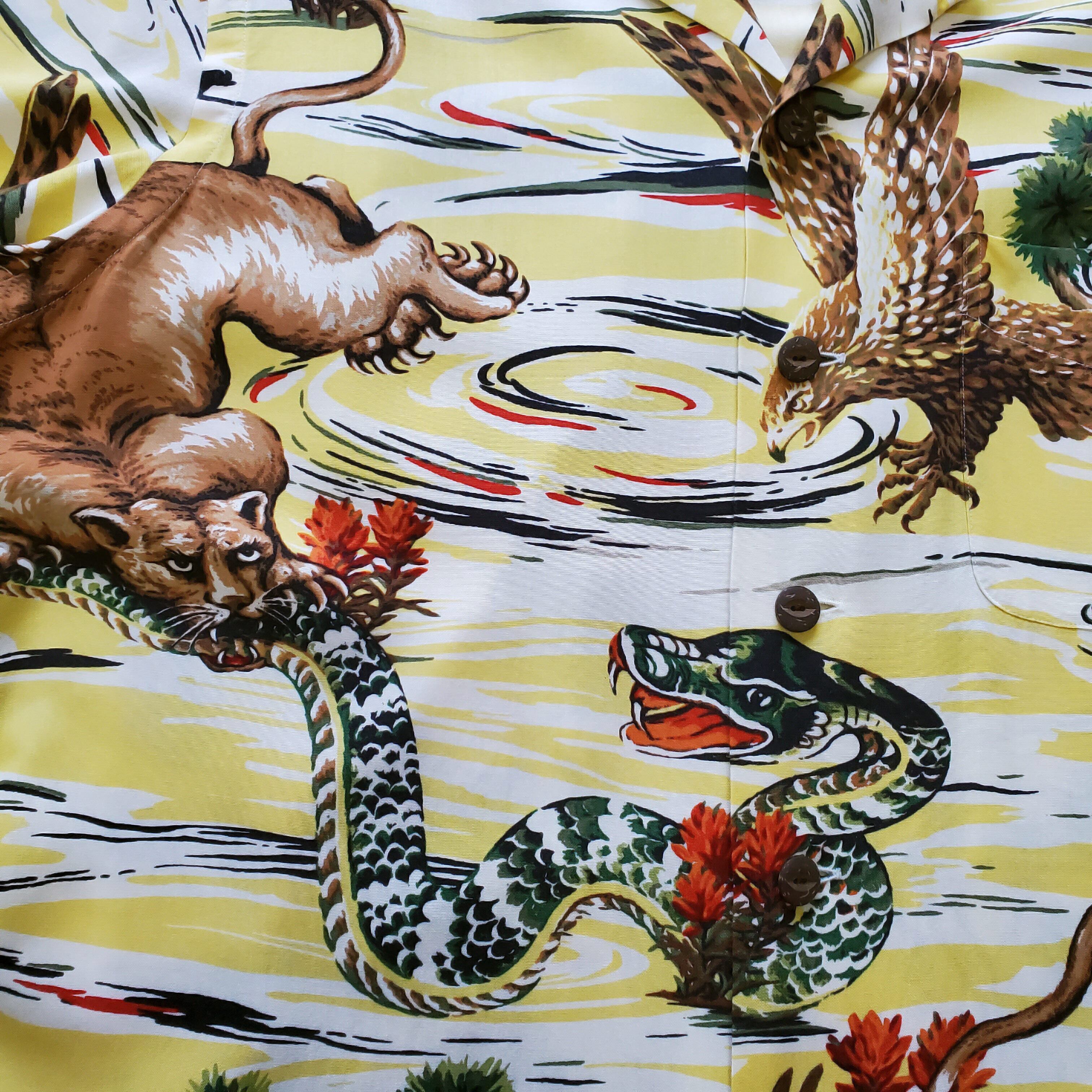 送料無料 Polo by Ralph Lauren ラルフローレン■美品 2023年 Classic Fit Vintage Print Camp Shirt アロハシャツ S 黄 蛇 虎 鷲 オープンカラー レーヨン 国内正規品 定価31900 No221962