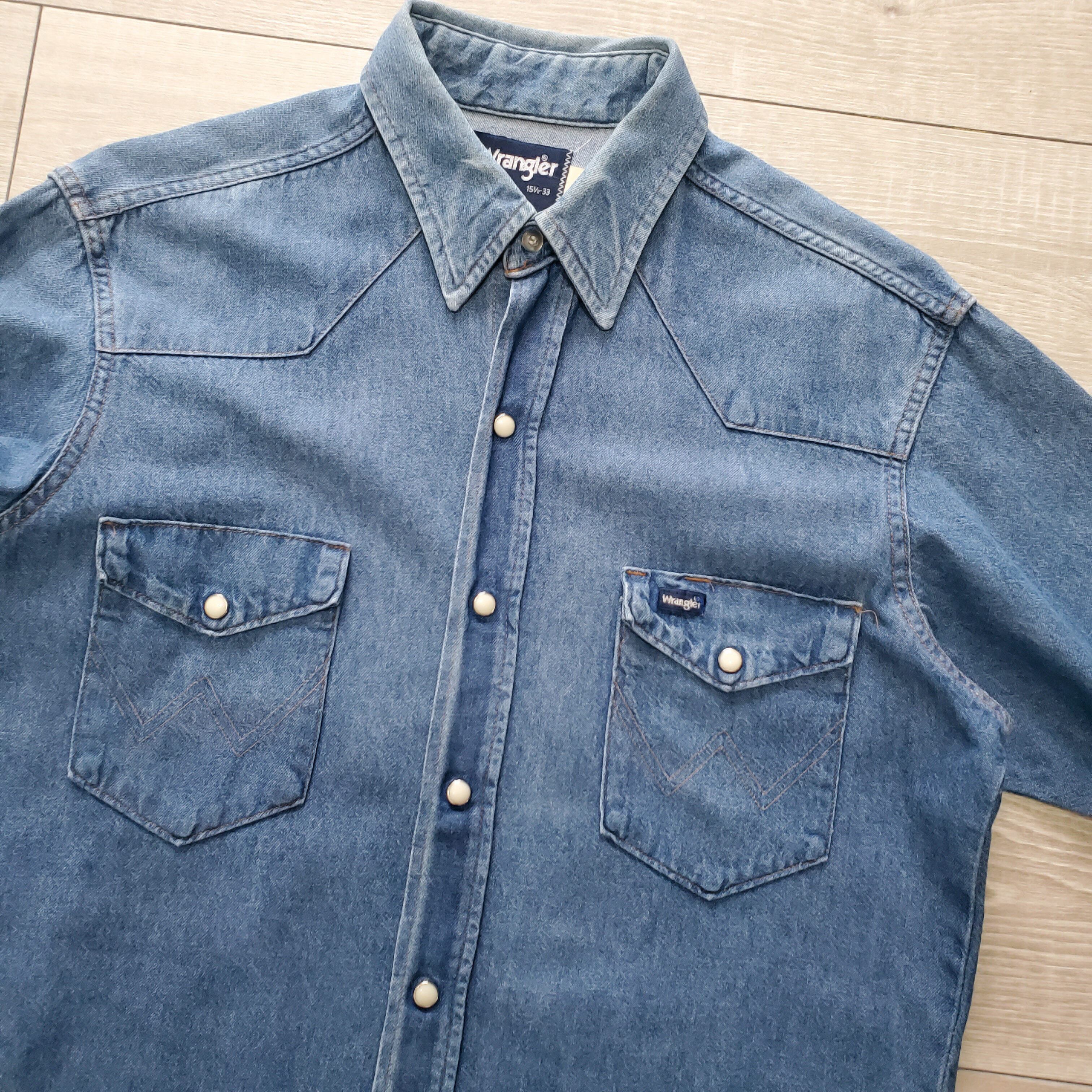 送料無料 Wranglerラングラー■良品 1980s vintage USA製 70127MW 長袖 デニム ウエスタンシャツ 15.5×33 一般M相当 ダンガリー カウボーイ No221993