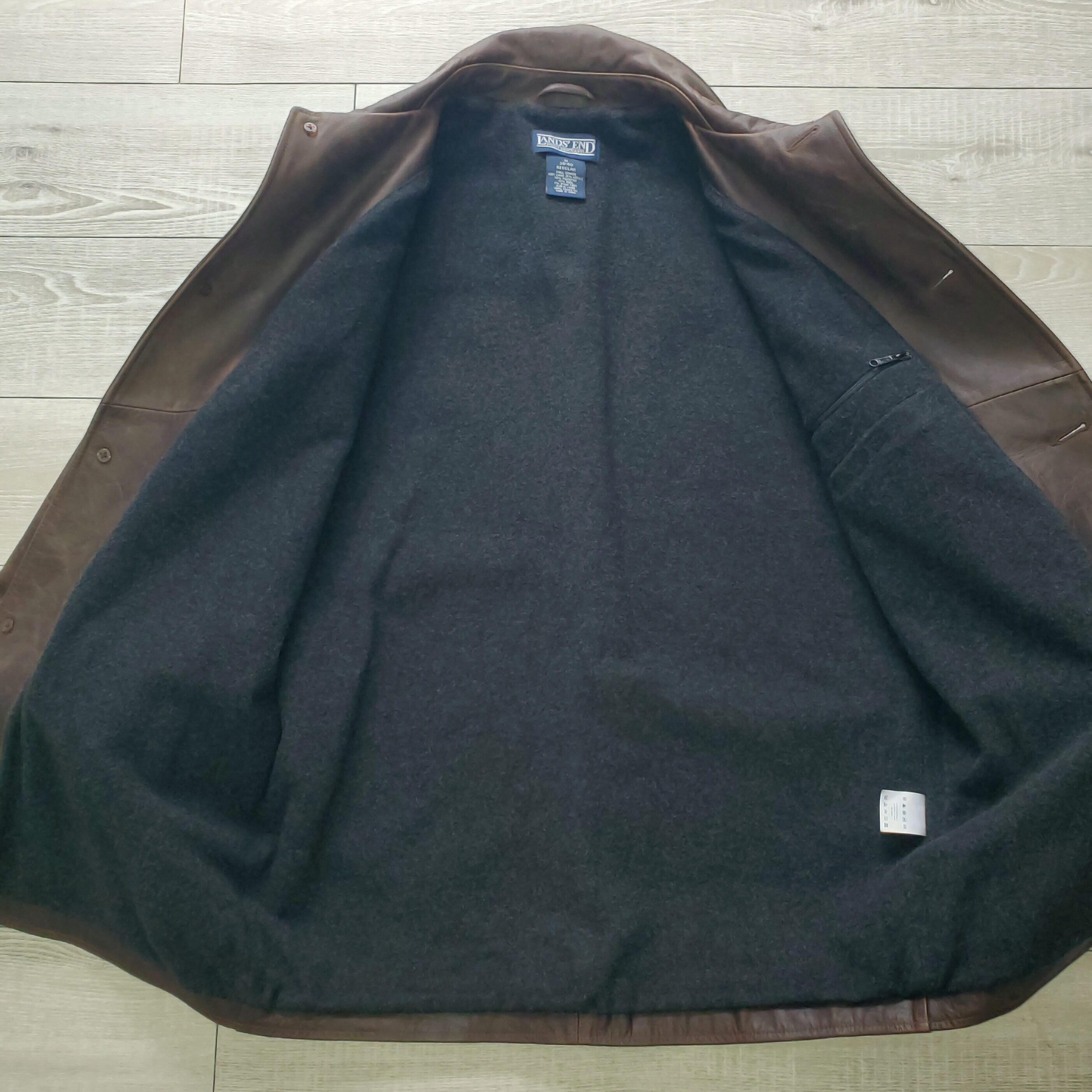 厚みがあり、柔らかく、着用感の良い上質な牛革を使用したLANDS'ENDのレザーカーコートになります。