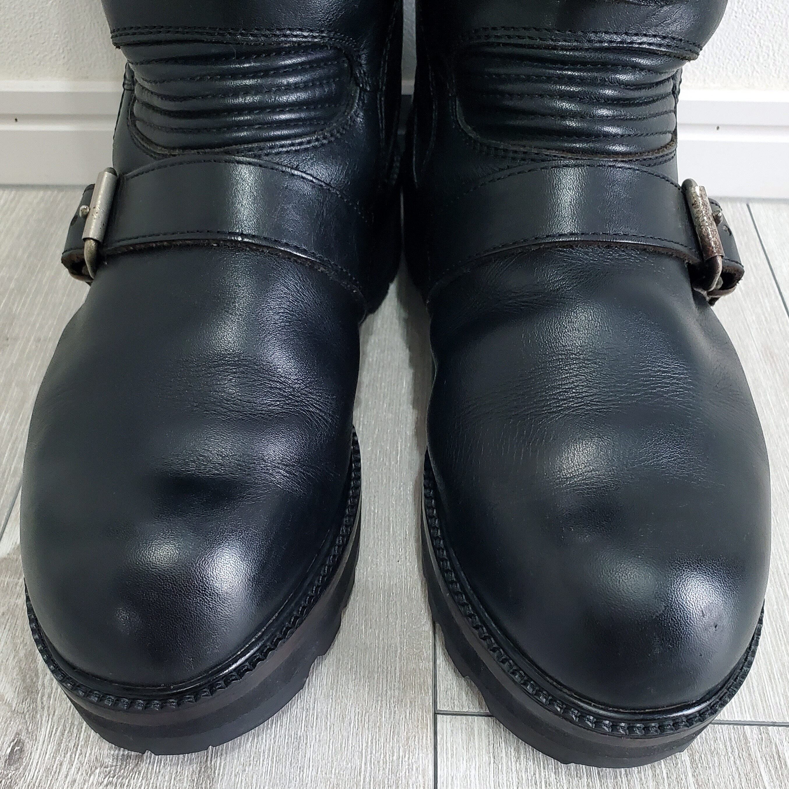KADOYAカドヤ■美品 BLACK SHIELD ブラックシールド ライディングブーツ 26.5cm カスタム 厚底仕様 エンジニア バトル 黒 本革 レザー バイク プロテクター Vibramビブラム No221988