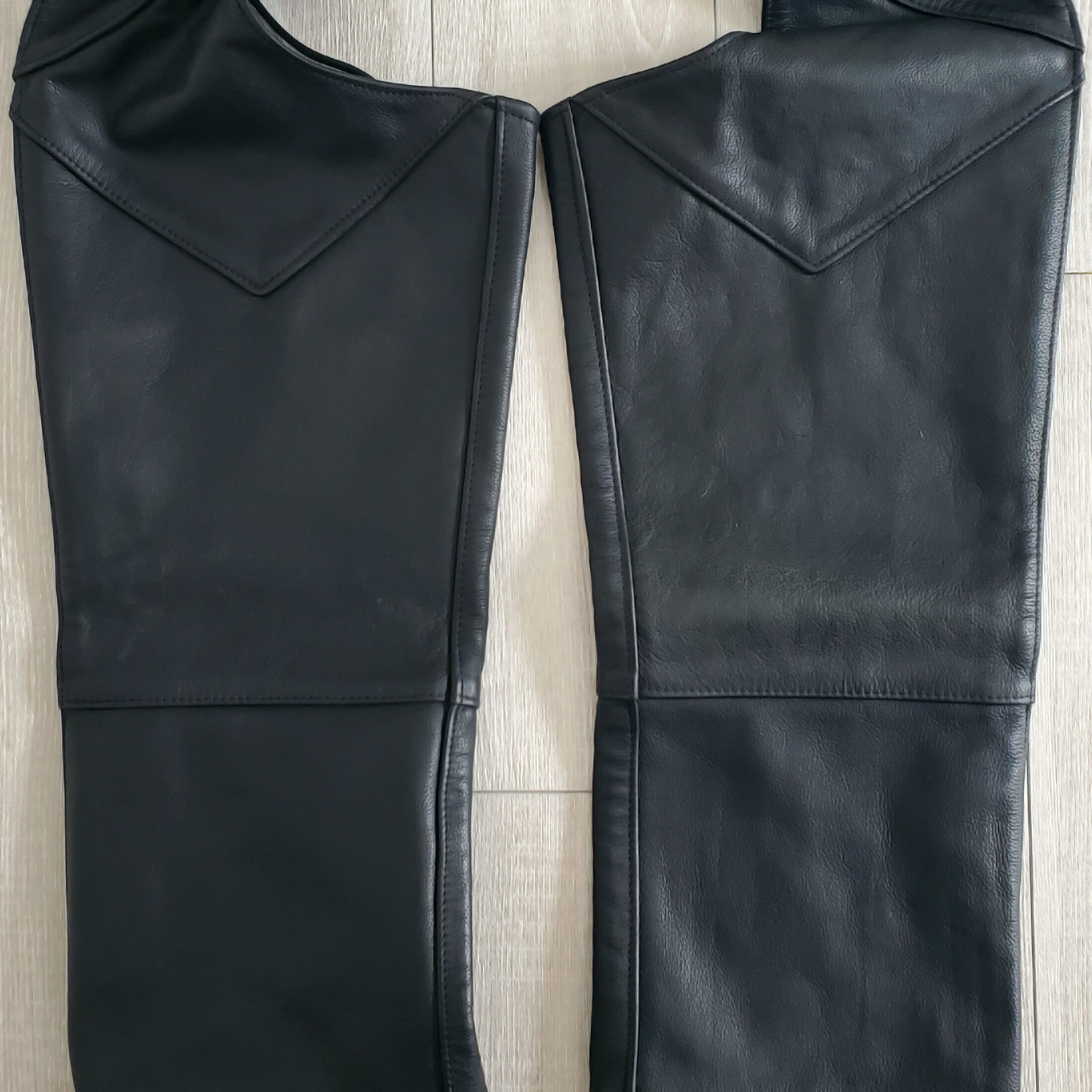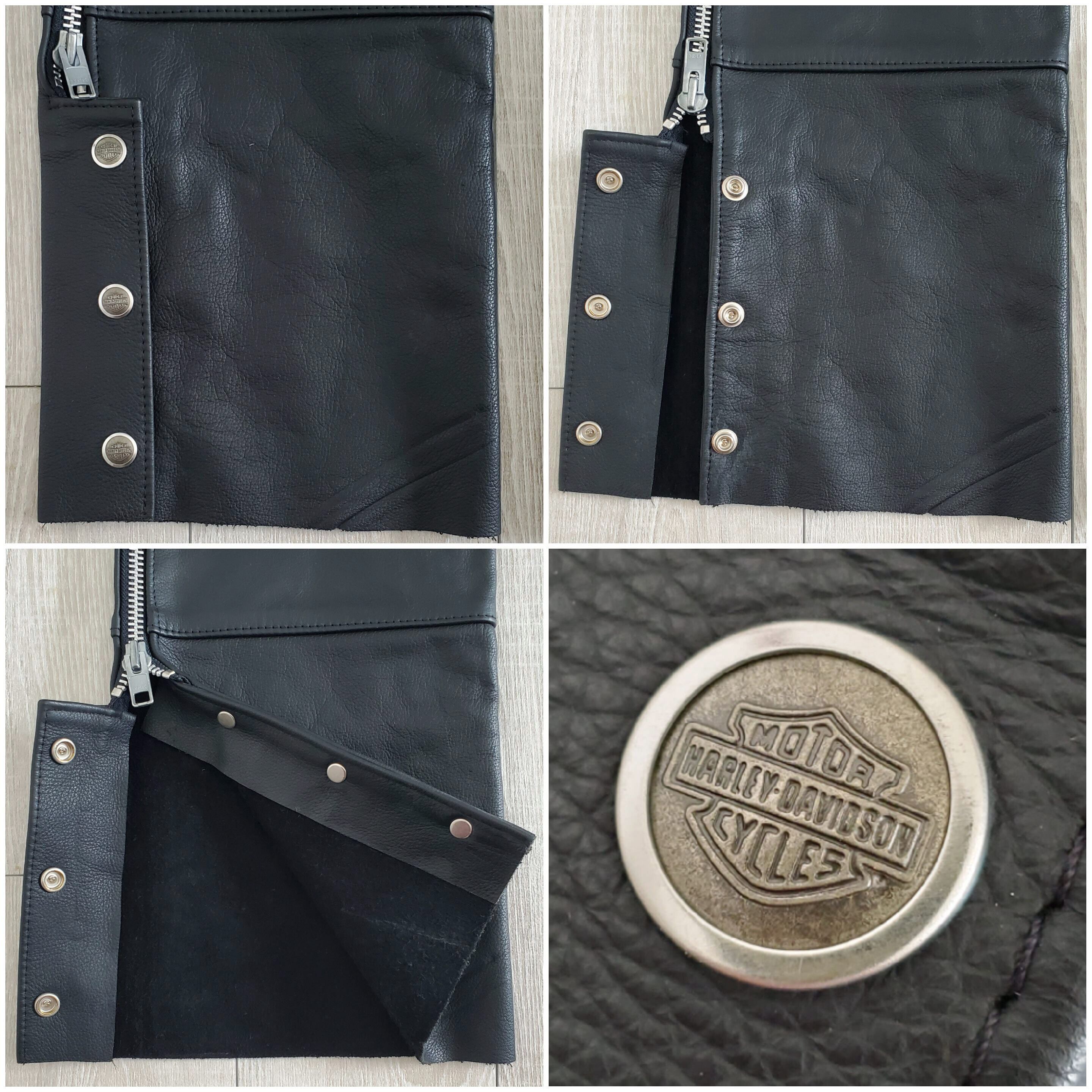 Harley-Davidson ハーレーダビッドソン■美品 2000s USA製 本革 肉厚 Chap Stock Leather レザーチャップス L 黒 W31-34 革パン バイカー 牛革 サイドジップ レースアップ 定価40000 No222048