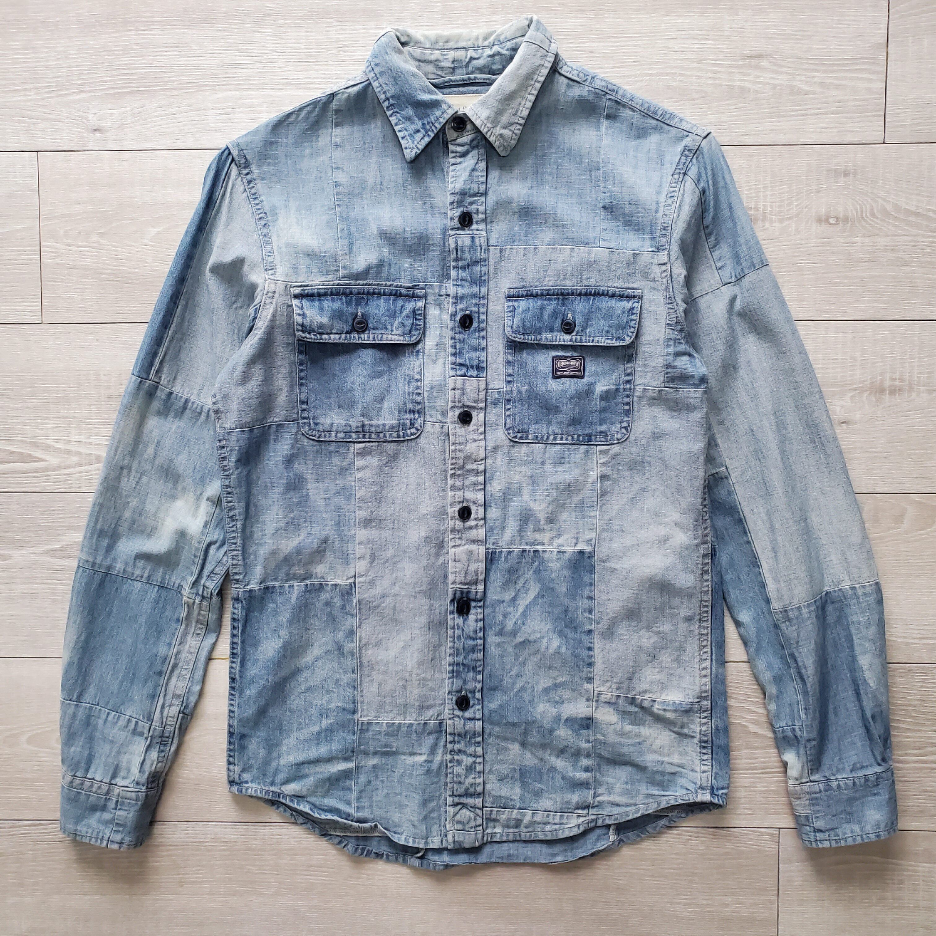 送料無料 DENIM&SUPPLY デニムアンドサプライ ラルフローレン■美品 2000s USED加工 パッチワーク 長袖 シャンブレーシャツ XS ポロジーンズ POLO RALPH LAUREN No222008