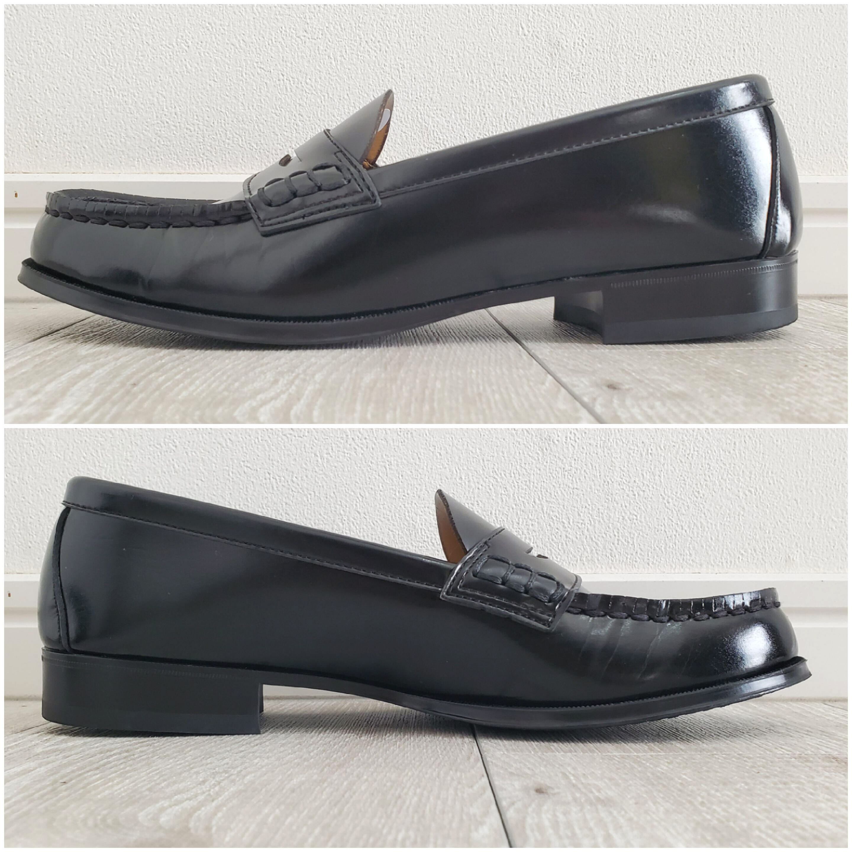 ベーシックなコインローファー仕様で、スカートやスラックス、デニムなど幅広いコーディネートに対応。