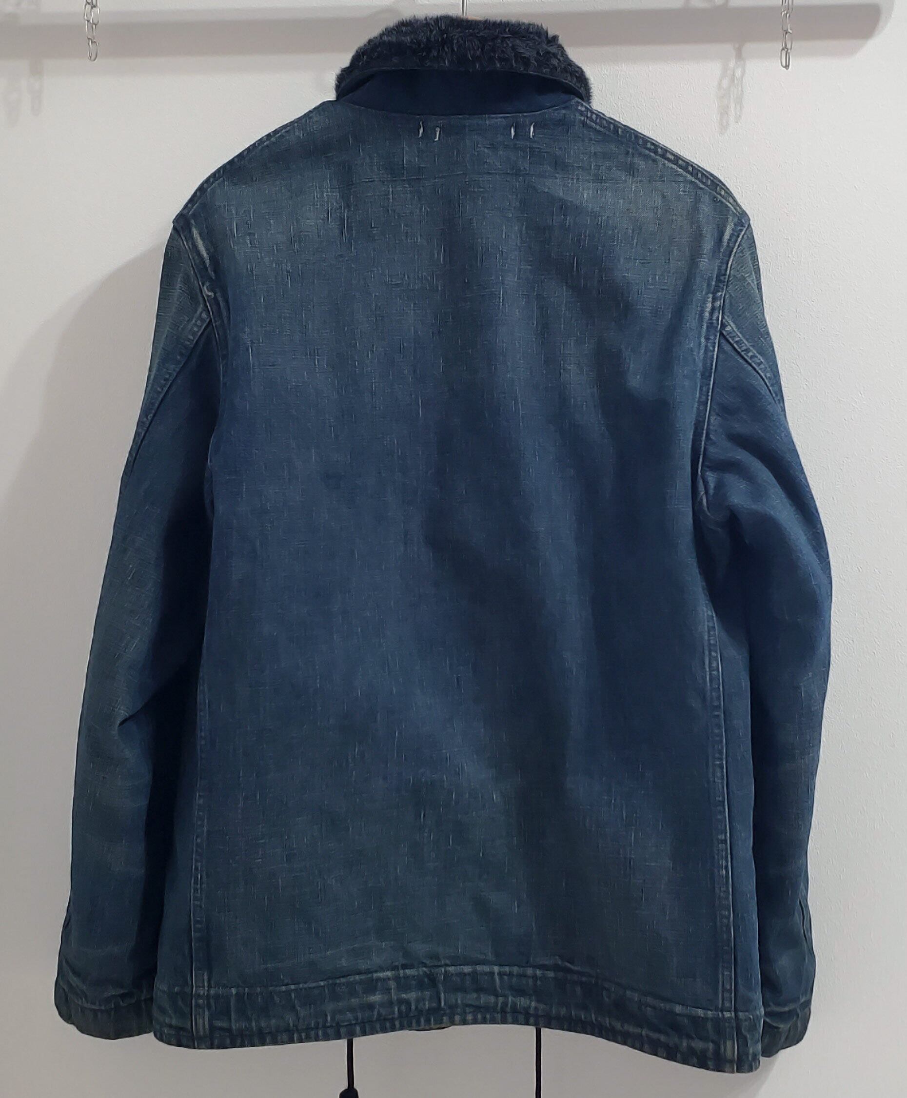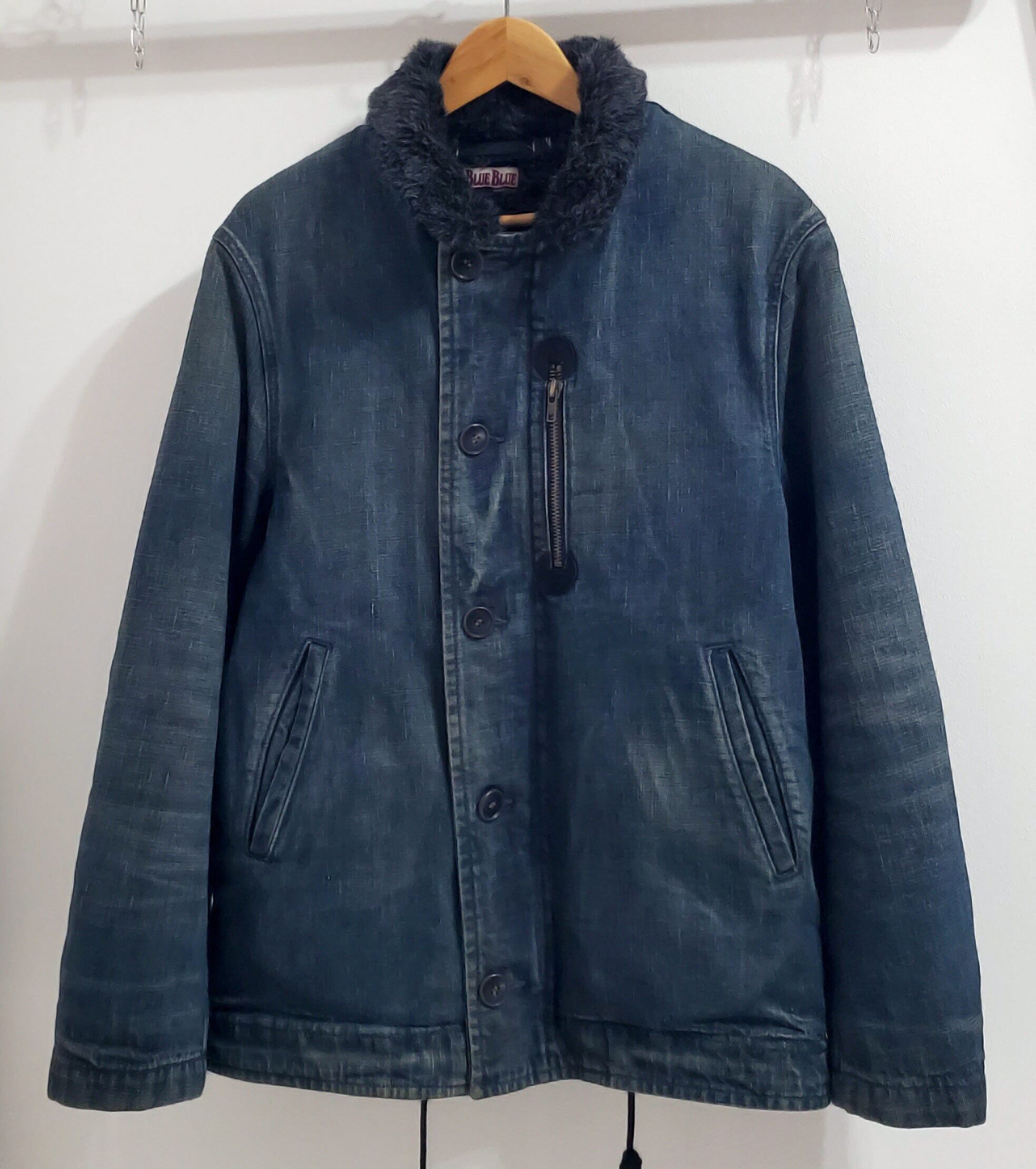 BLUEBLUEブルーブルー■美品 2015年 即完品 日本製 アンティーク USED加工 インディゴ クラフトマン デニム デッキジャケット L 裏地ボア US NAVY 海軍 HRM ハリウッドランチマーケット 聖林公司 定価62000 No221788