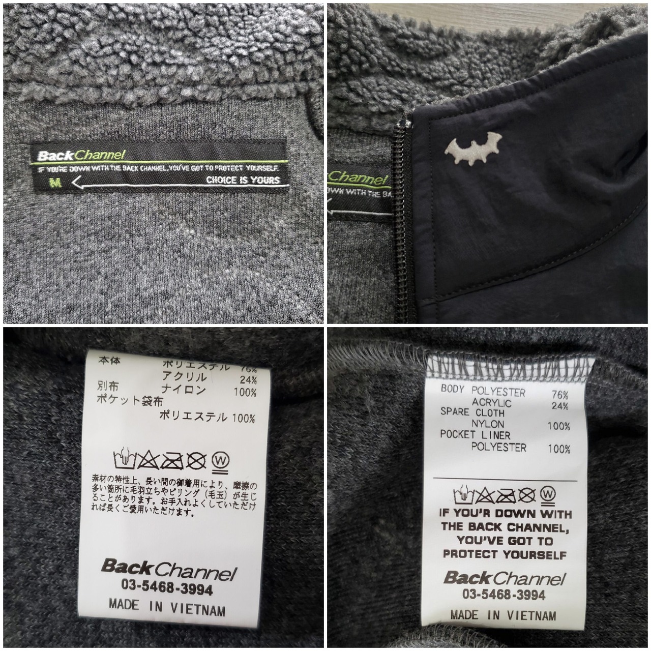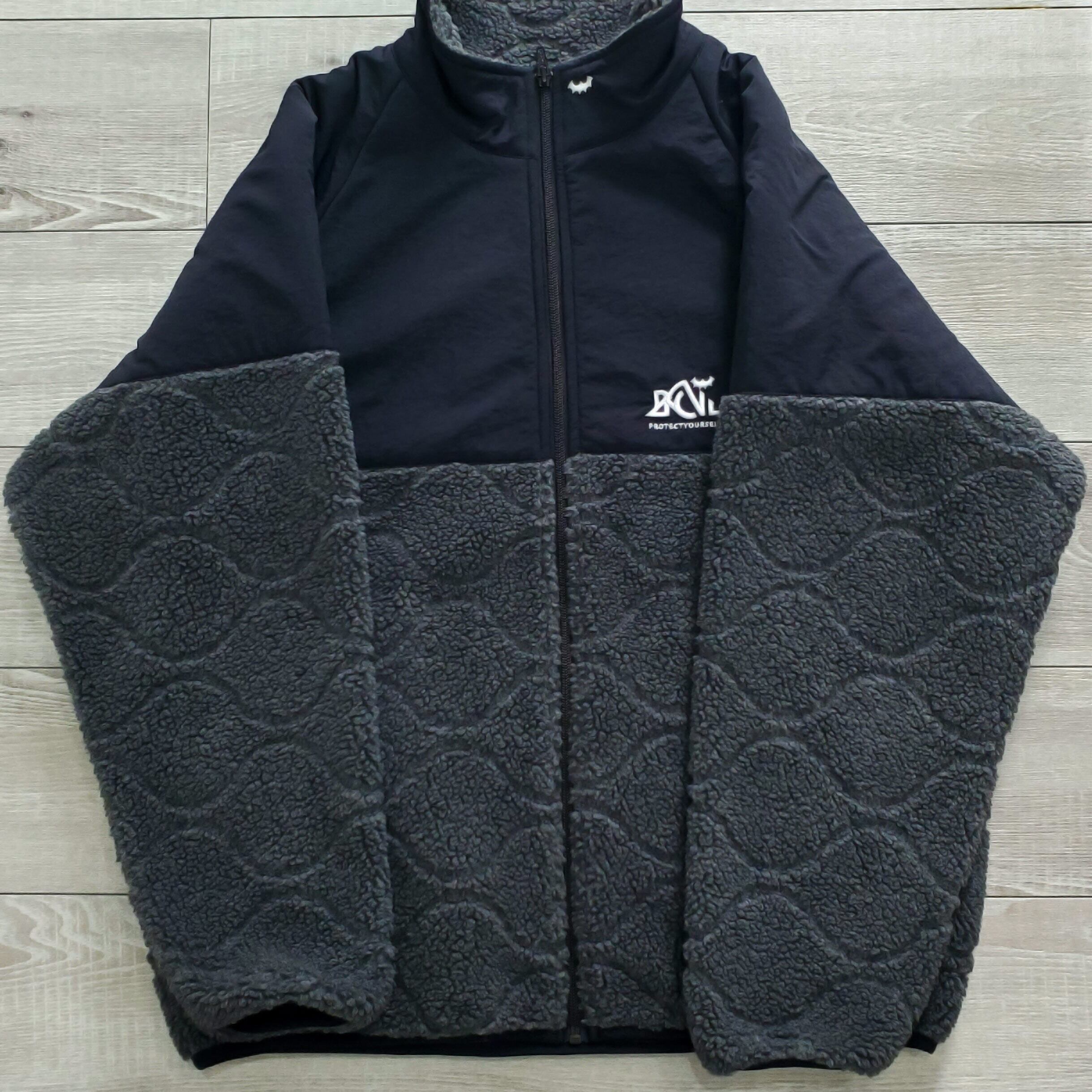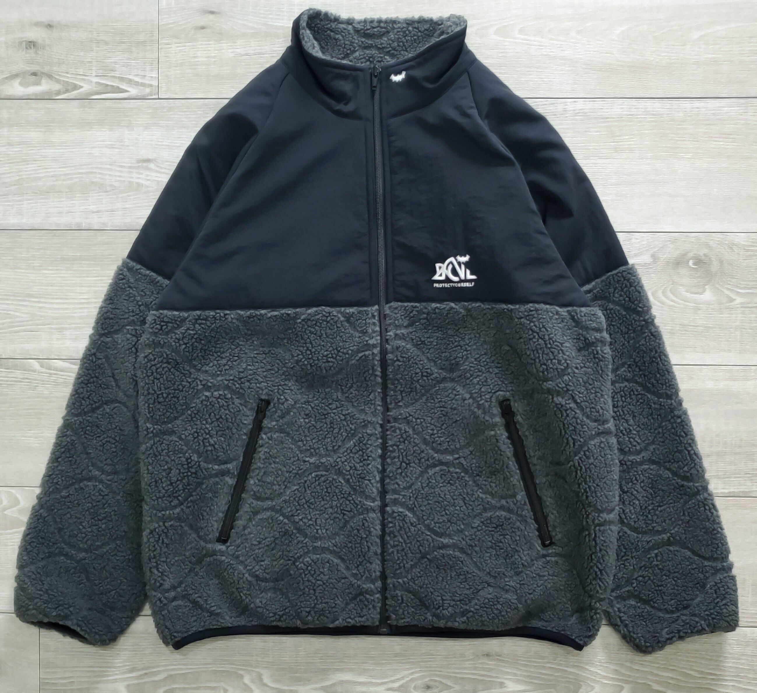 Back Channel バックチャンネル■美品 2023年 Boa Fleece Jacket M 切り替え キルティング ボア フリースジャケット 灰×黒 定価27500 No222119