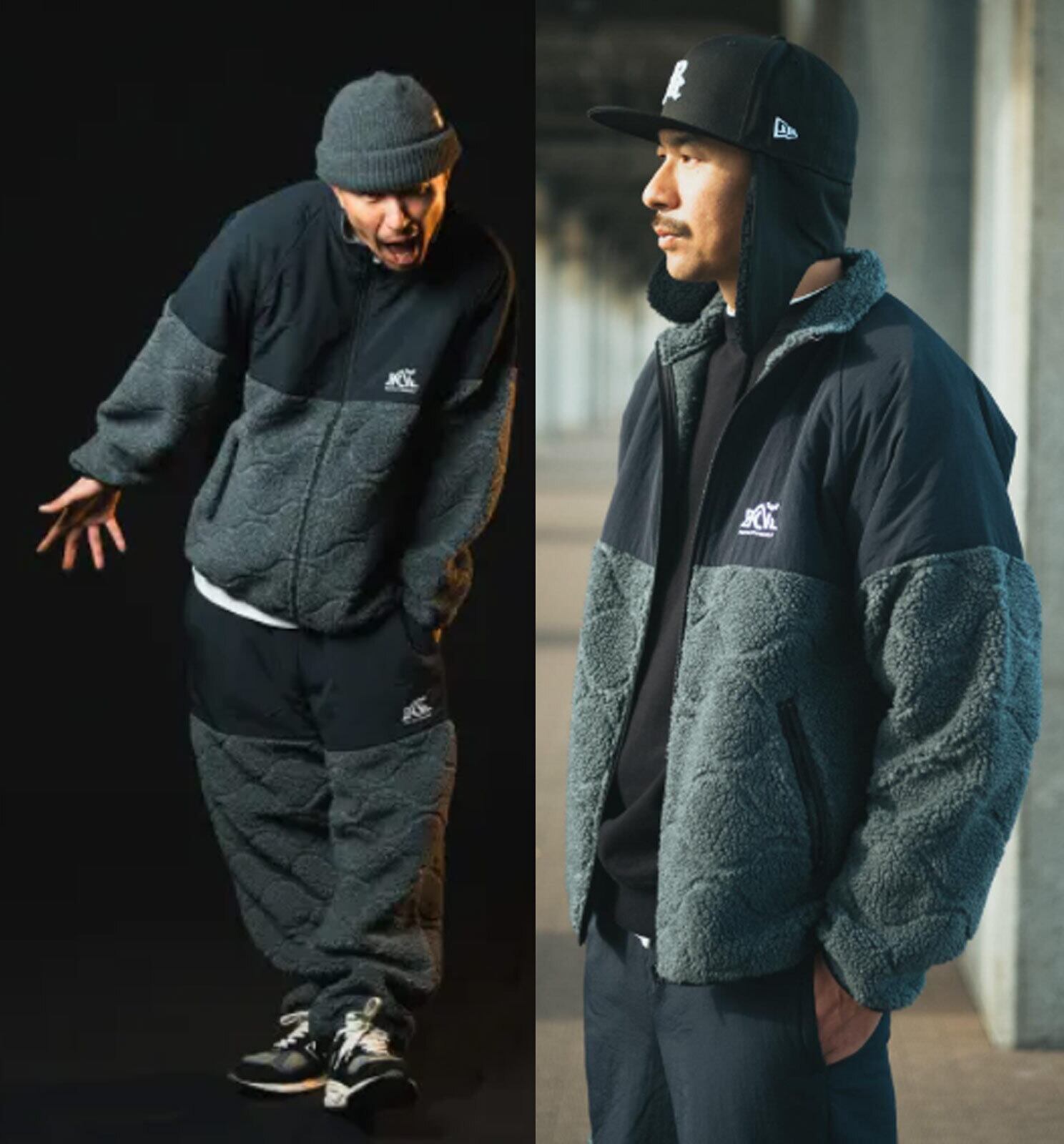 高周波による熱圧着でキルティングを表現したボアフリースを採用。