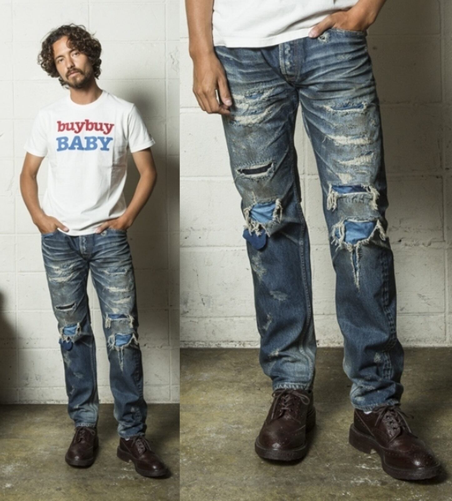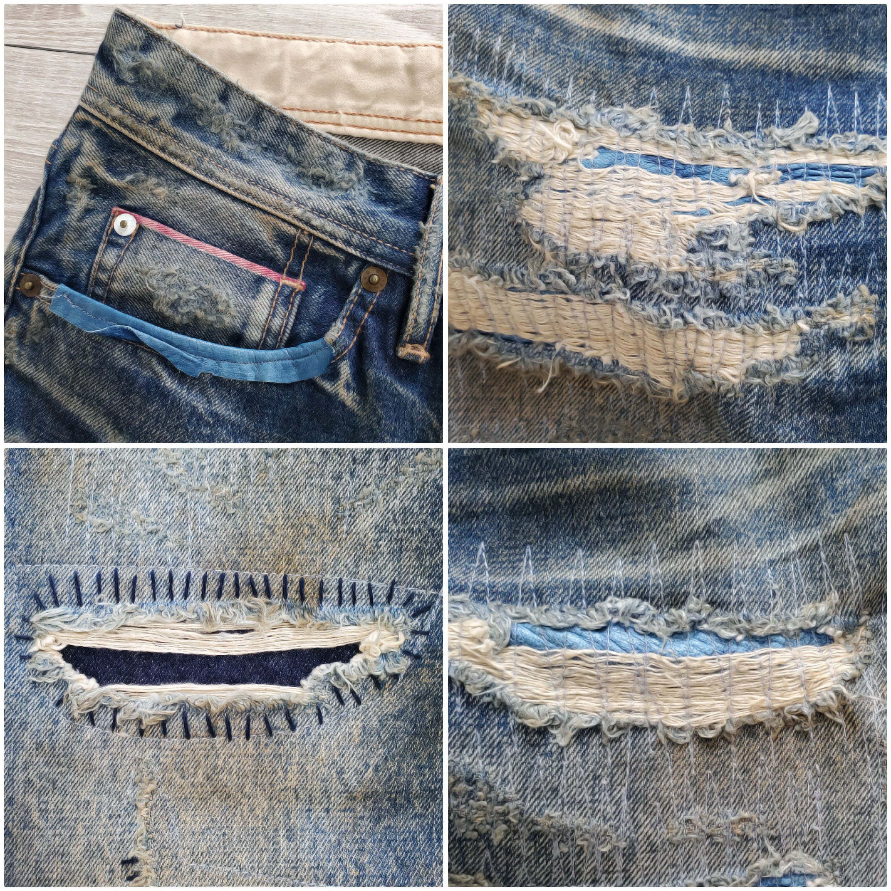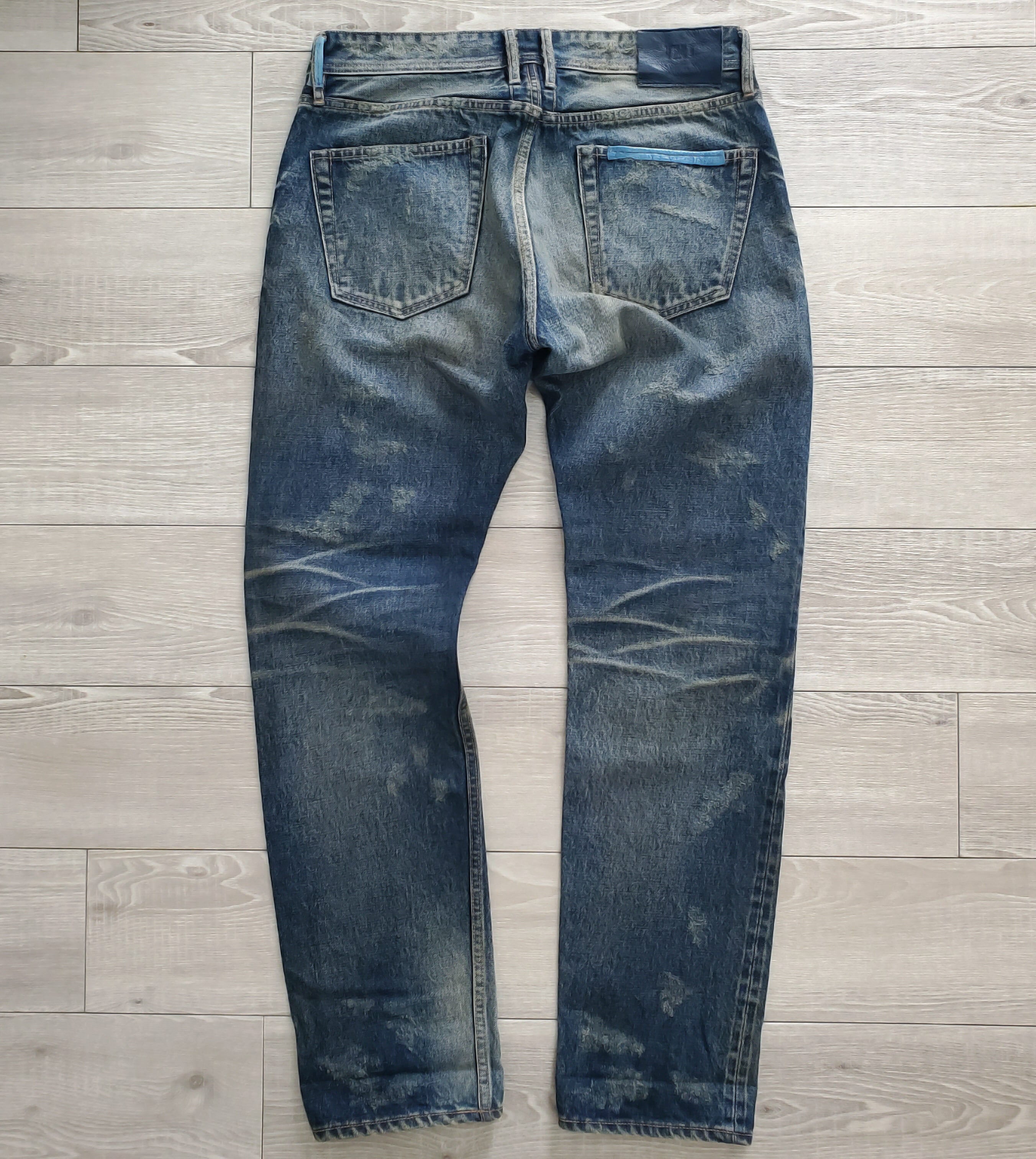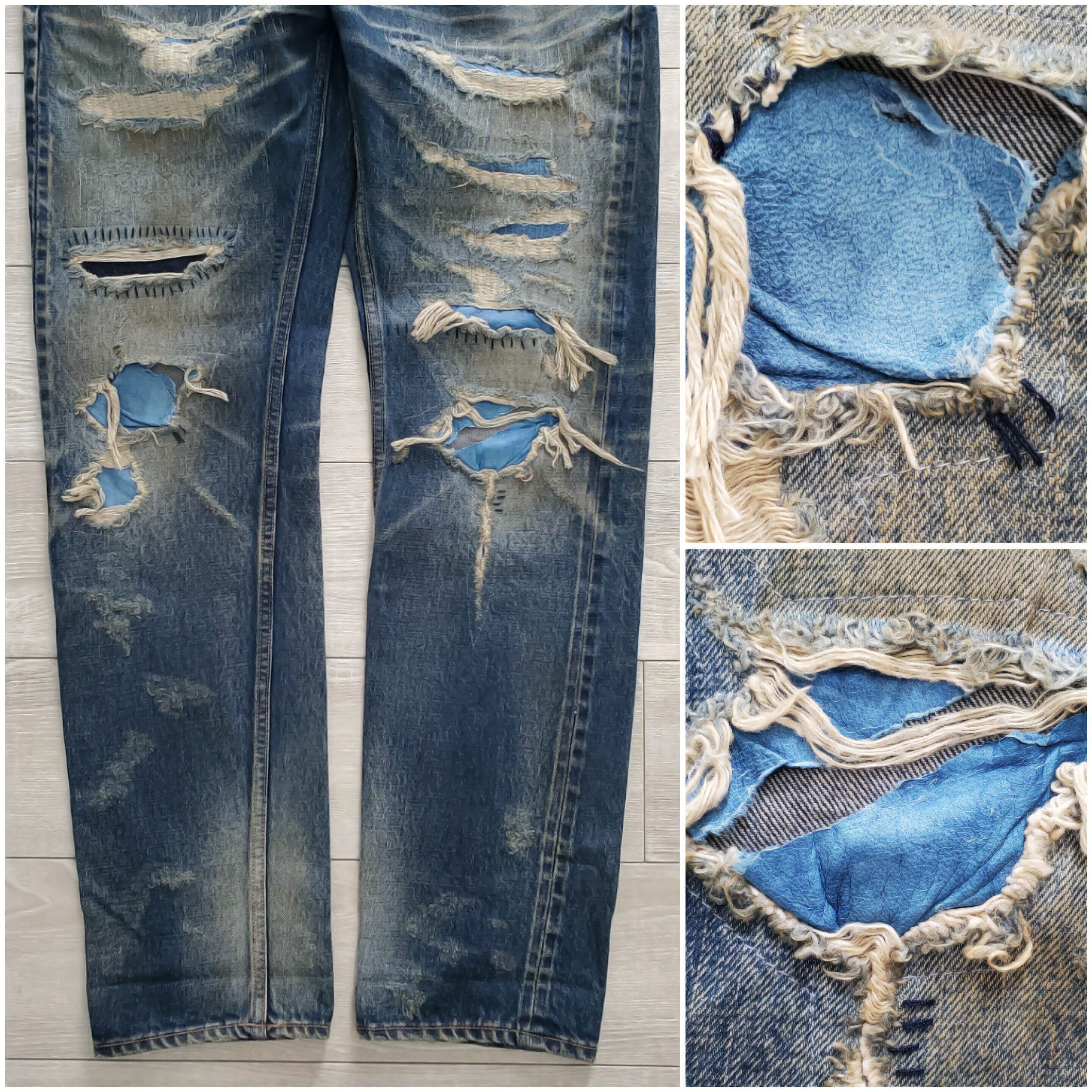 熟練の職人によって丹念に仕上げられた本作は、色落ち、クラッシュ、リペア、ダメージ、汚れ表現、縫製、刺繍のすべてに強いこだわりが感じられる圧巻の完成度。