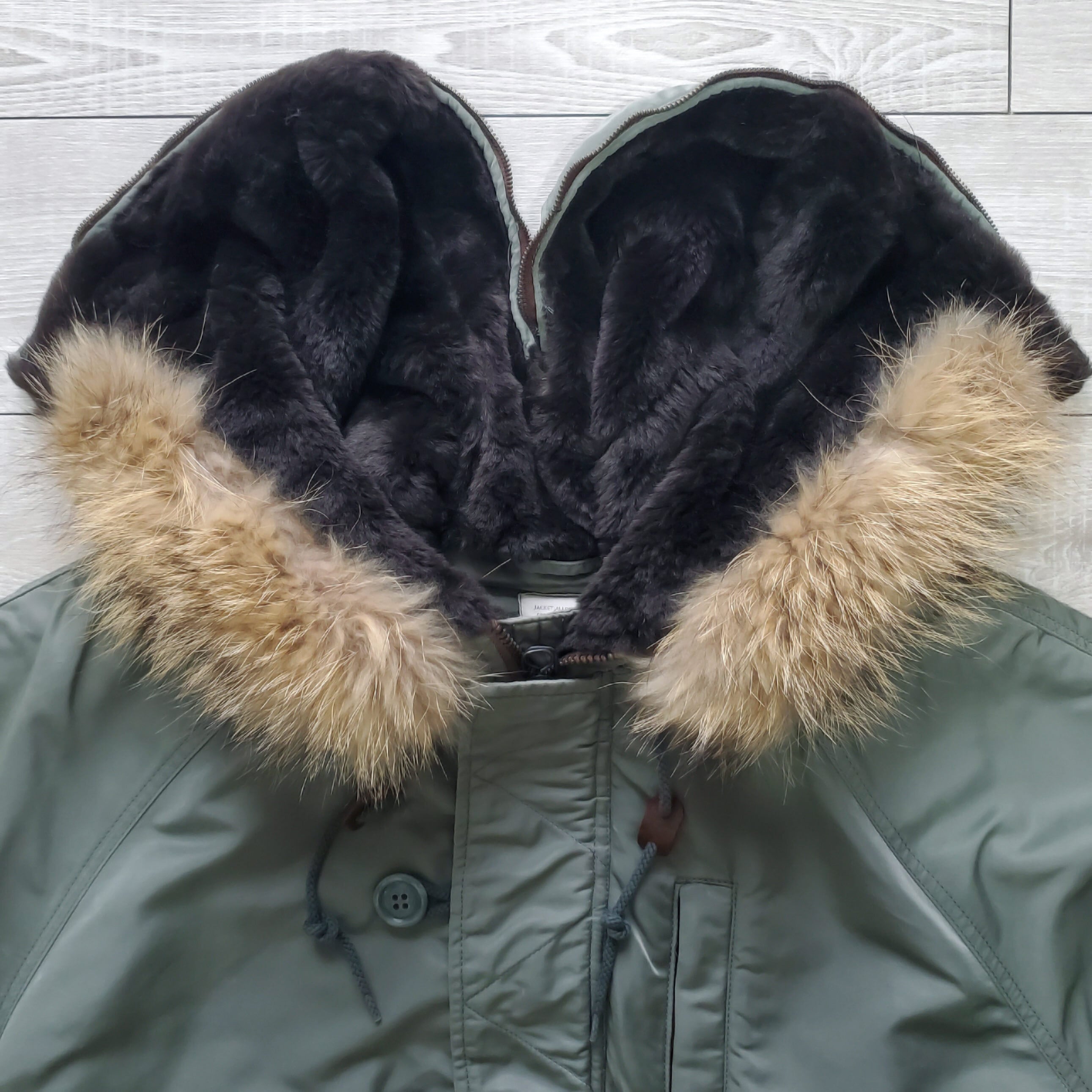 フード内側にはフカフカで滑らかなボアを配し、ラクーンファーを装備。