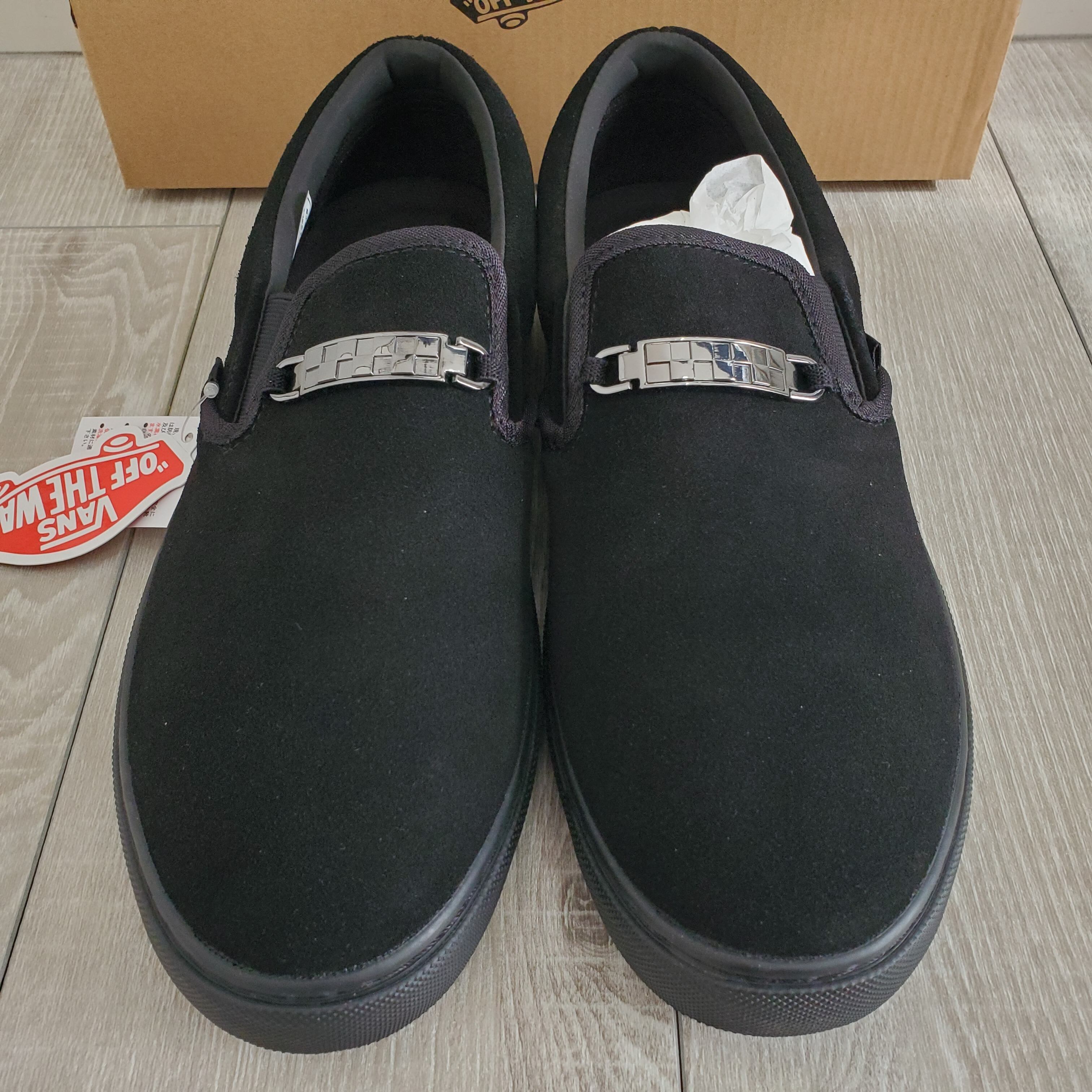 VANSバンズ■新品未使用 2025年 日本企画 廃版 SLIP ON スリッポン V98CF CHN BLACK 本革 オールスエード US10 JP28 黒 モカシン ローファー レザー デッキシューズ No222147