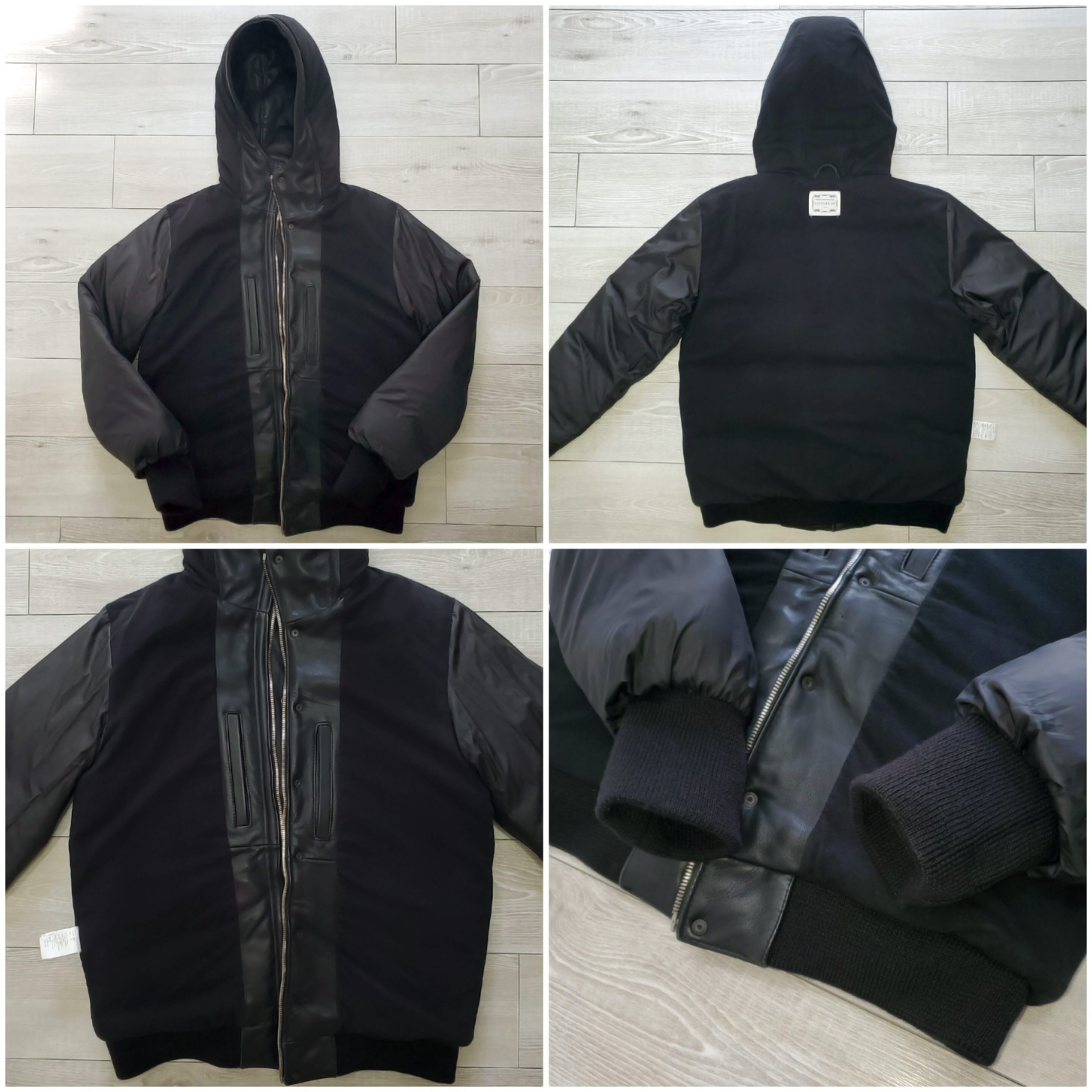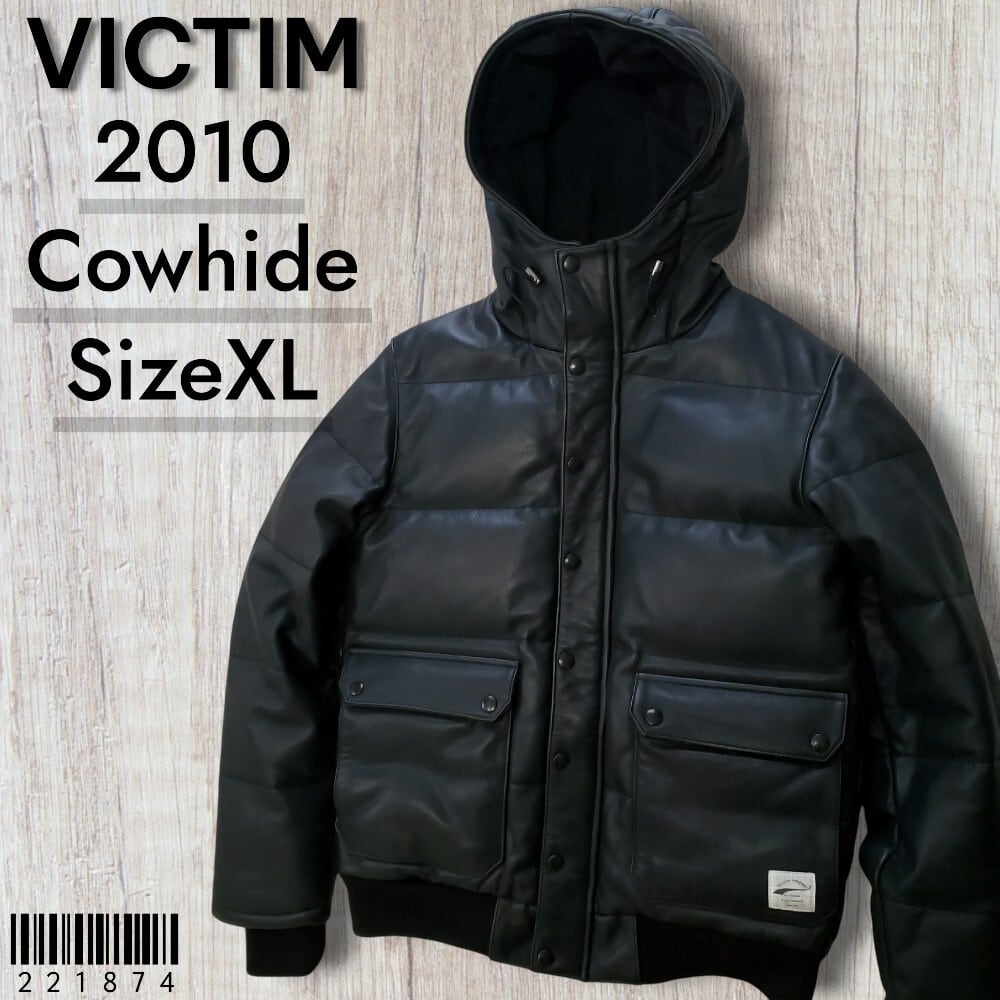 VICTIMヴィクティム■美品 2010年 LEATHER DOWN JACKET 牛革 ナッパ仕上げ フード レザーダウンジャケット XL 黒 パーカー 定価73500 No221874