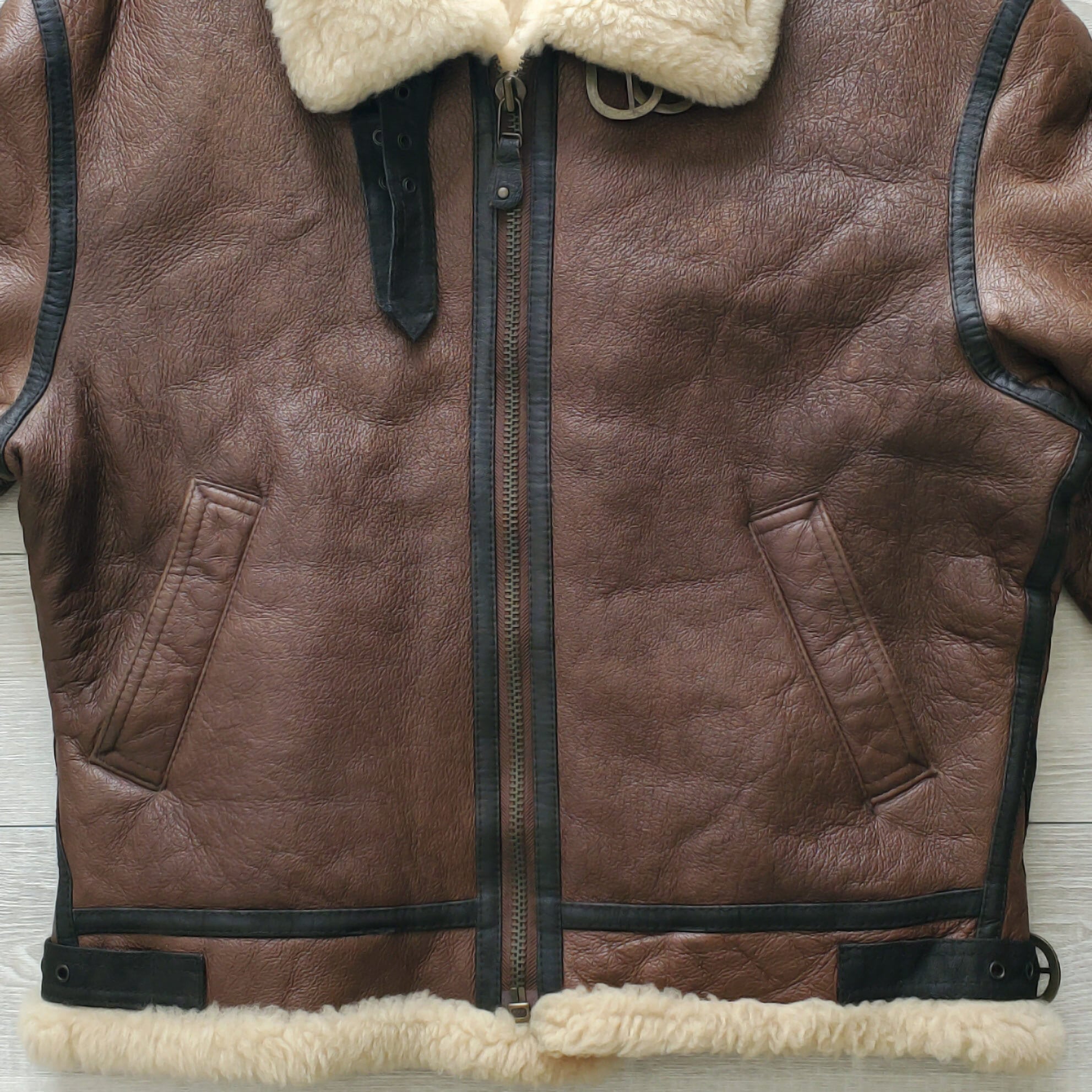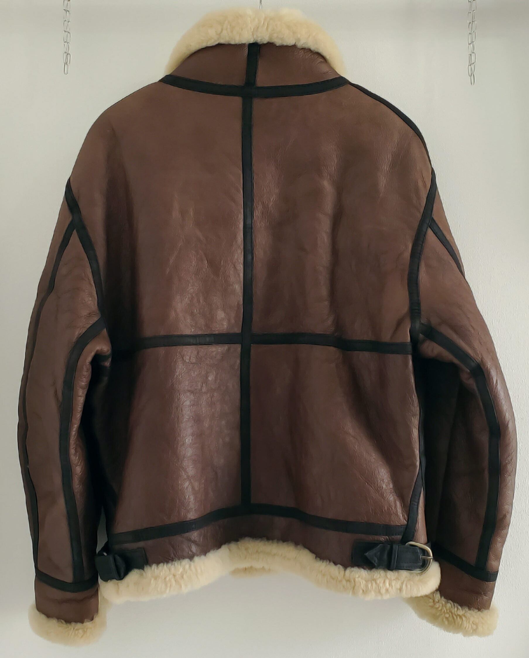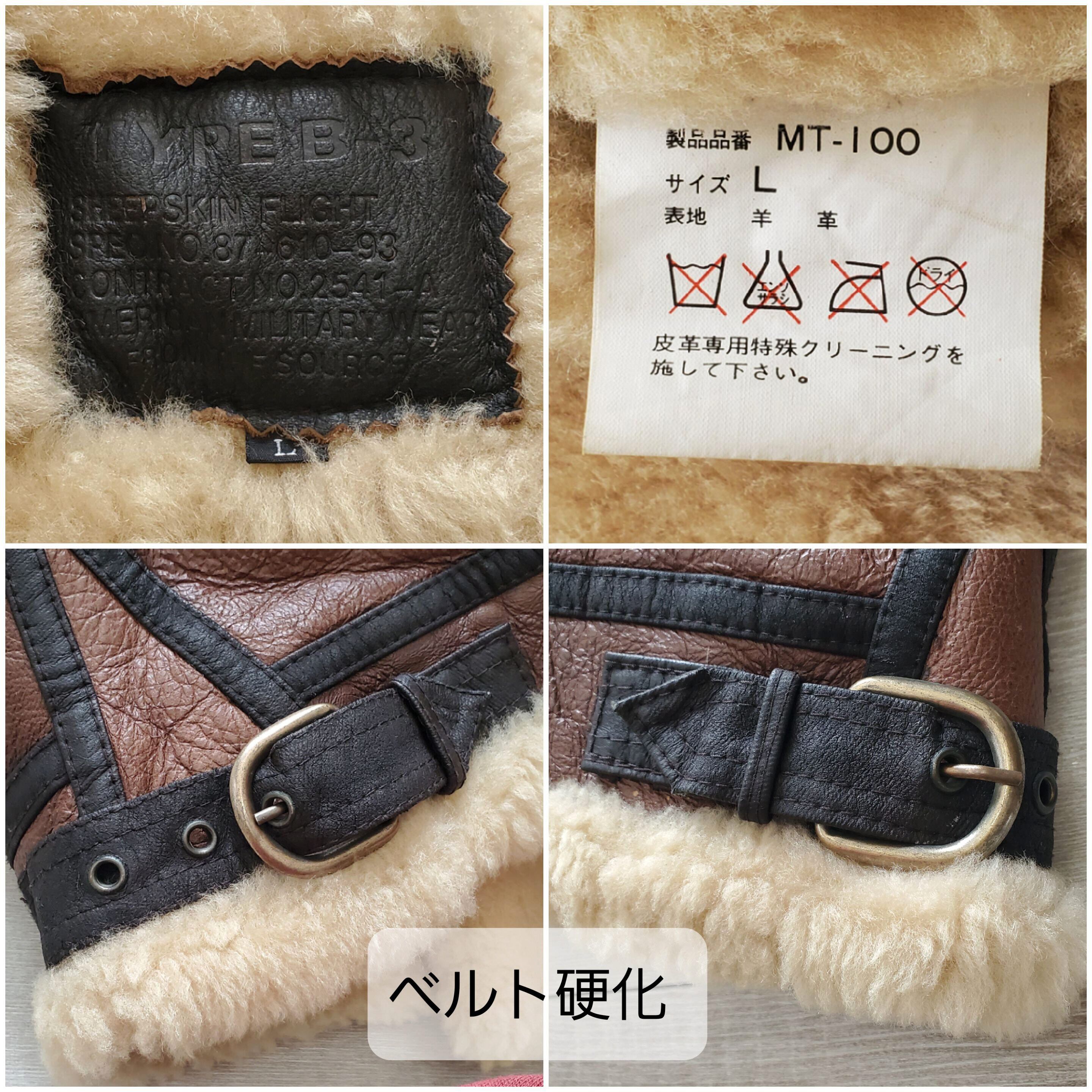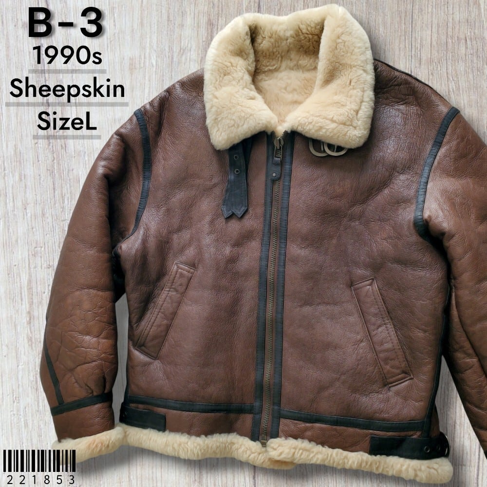 1990-2000s 美品 羊革×羊毛 B-3 TYPE MILITARY FLIGHT JACKET シープスキン リアルムートン B-3 フライトジャケット L 日本企画 こげ茶 ボンバージャケット ボア No221853