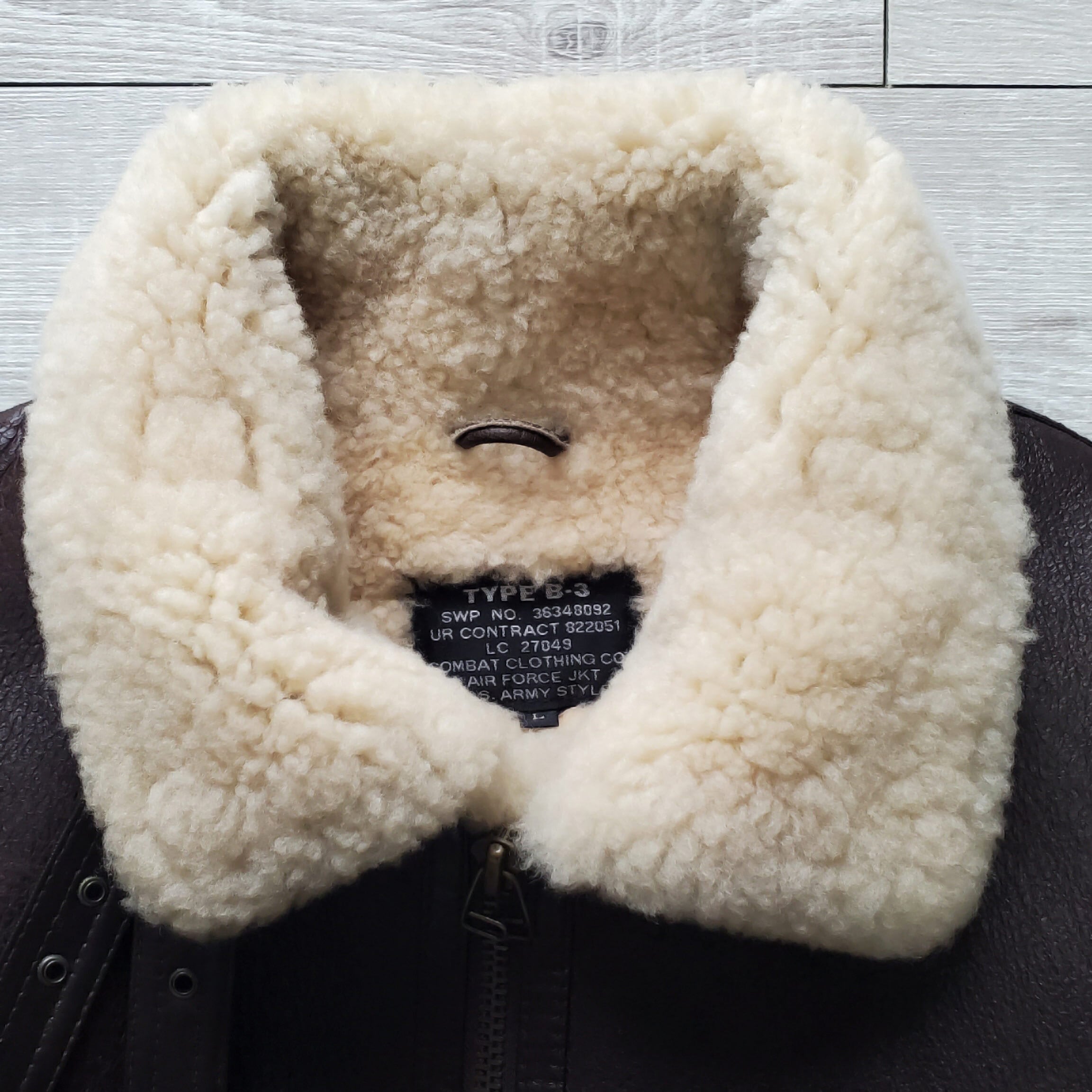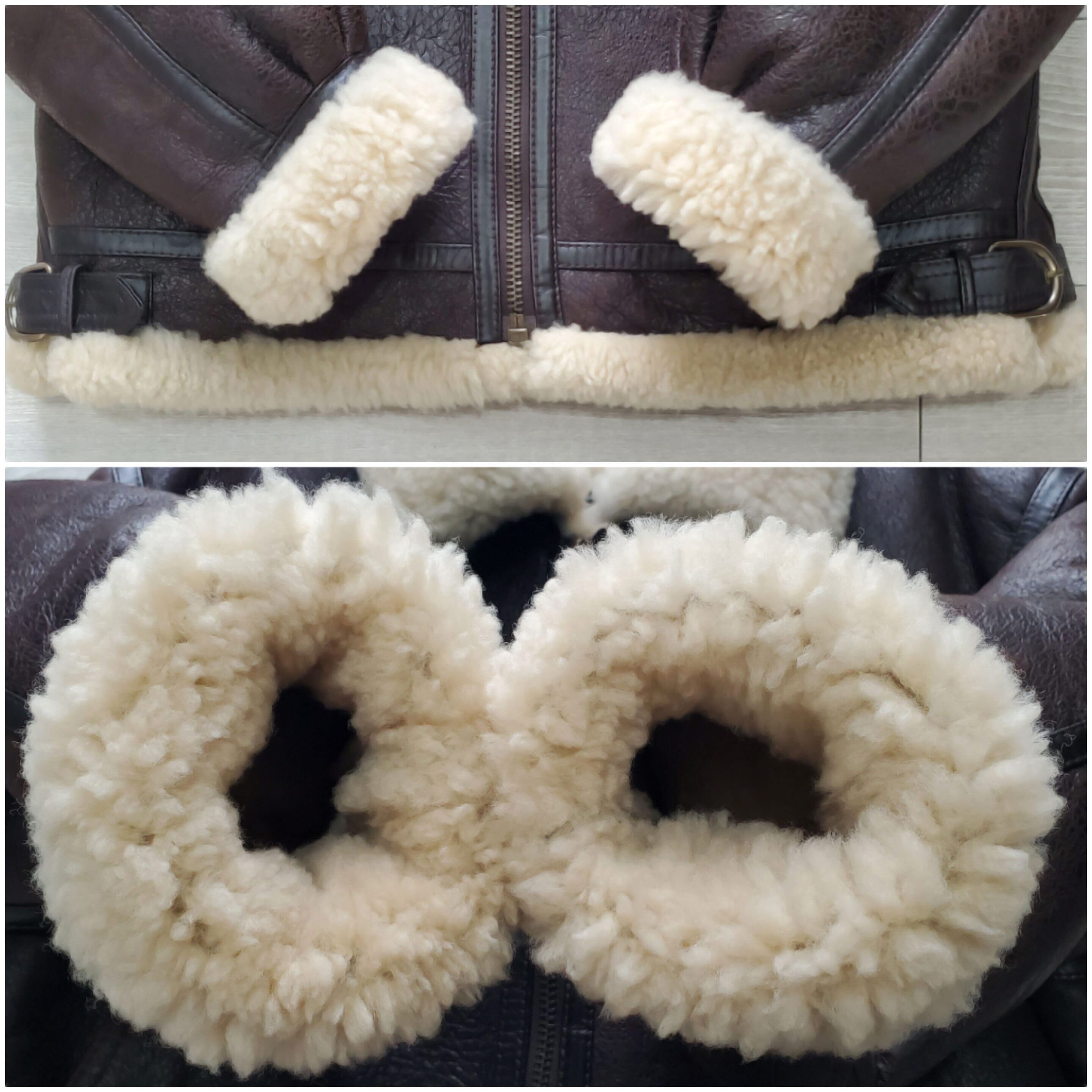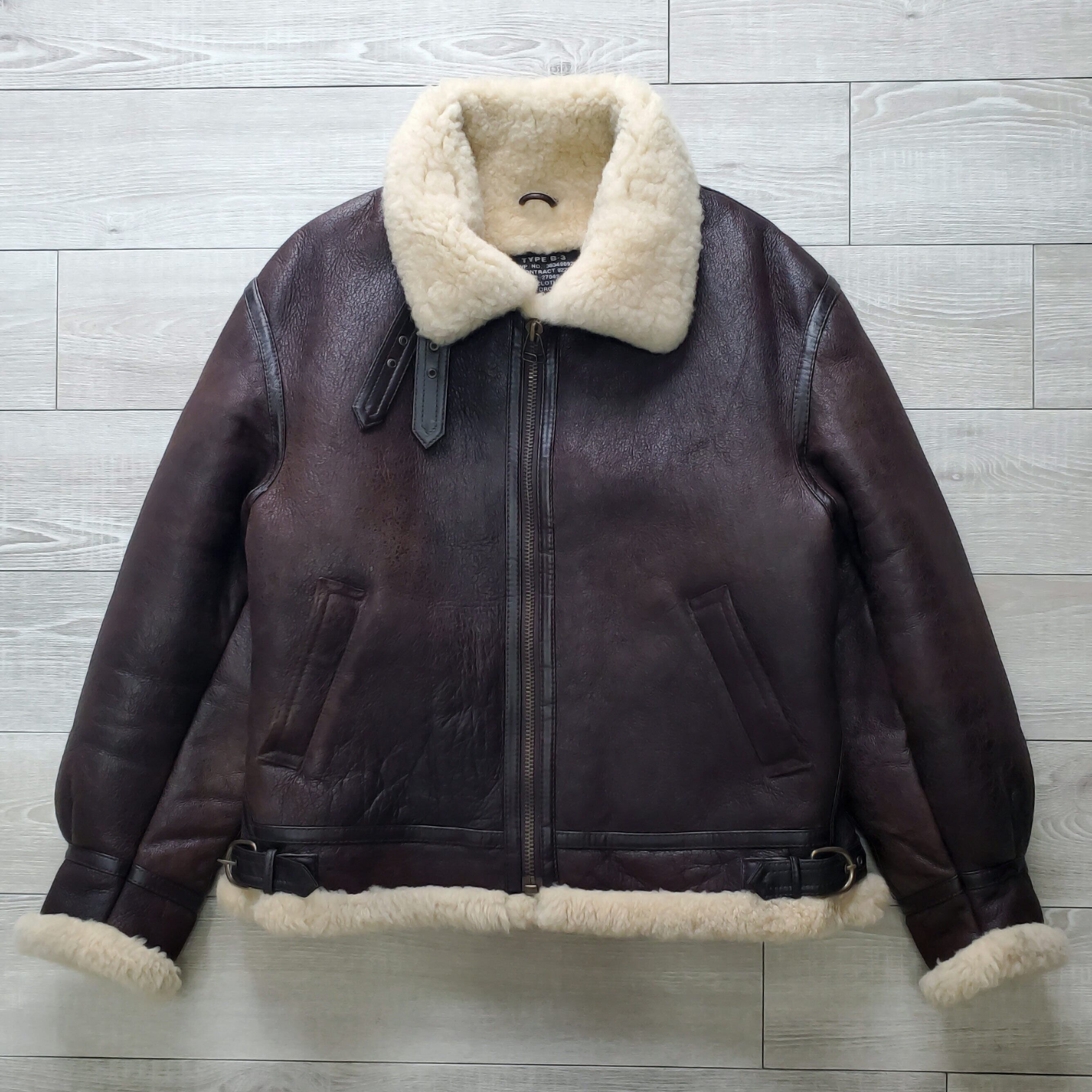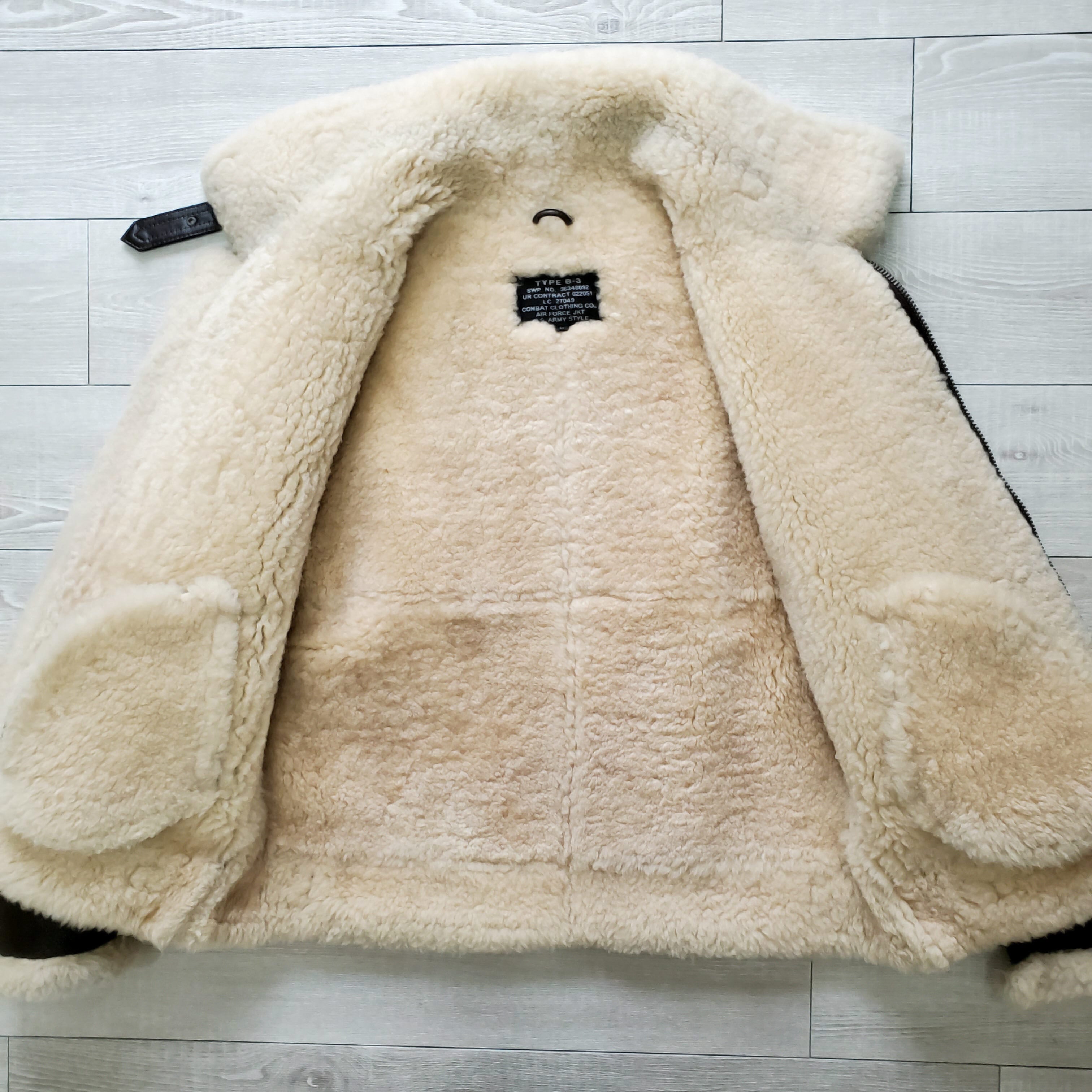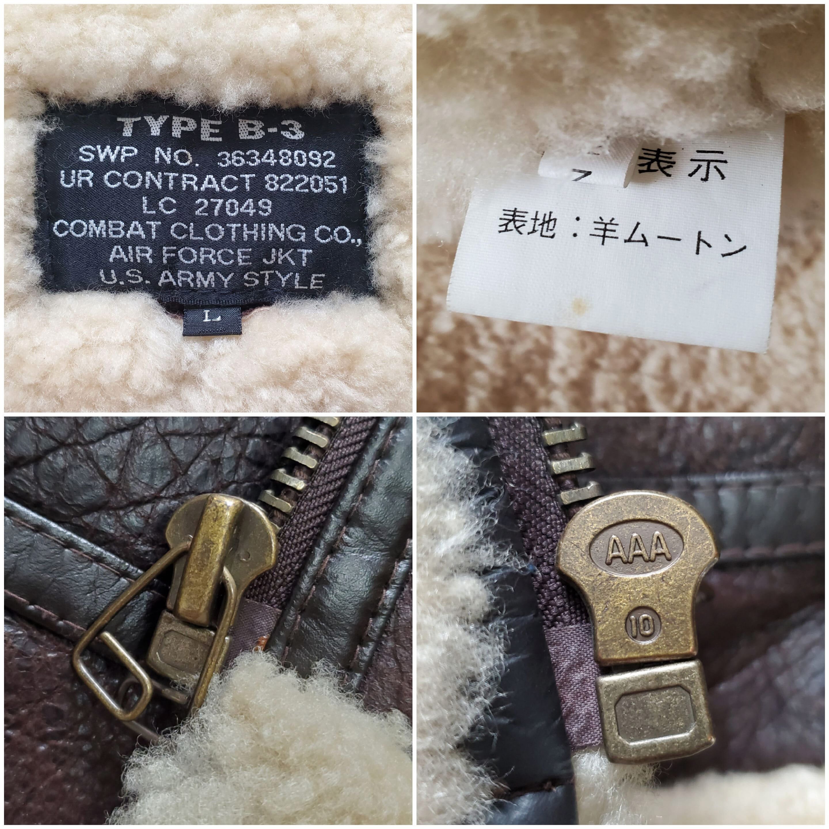 COMBAT CLOTHING コンバットクロージング■美品 1990s vintage 羊革×羊毛 B-3 フライトジャケット L リアルムートン こげ茶 本革 シープスキン レザー ボンバージャケット ボア 日本企画 No222032