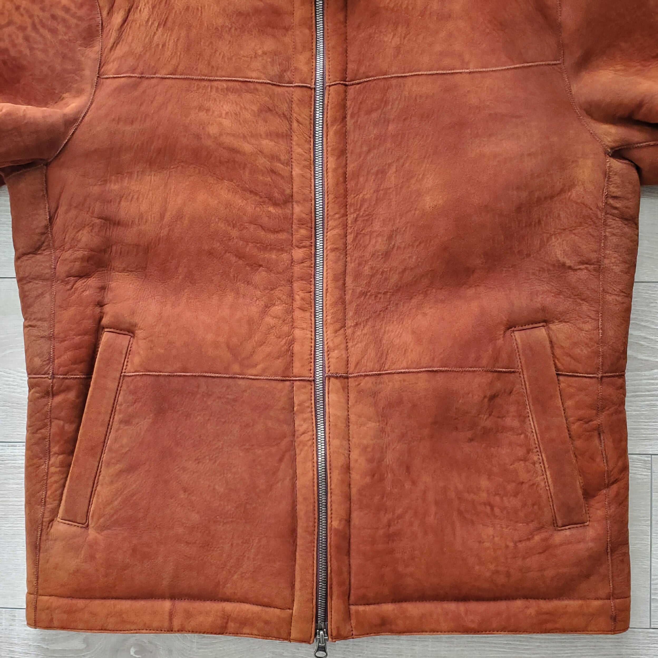 ※4枚目の画像にある襟元付近の一部あえて縫い合わされていない箇所がございますが、こちらはムートン特有の厚みを逃がし、襟の立ち上がりや折り返しを綺麗に見せるための意図的な設計となり、糸抜けによるダメージではございません。