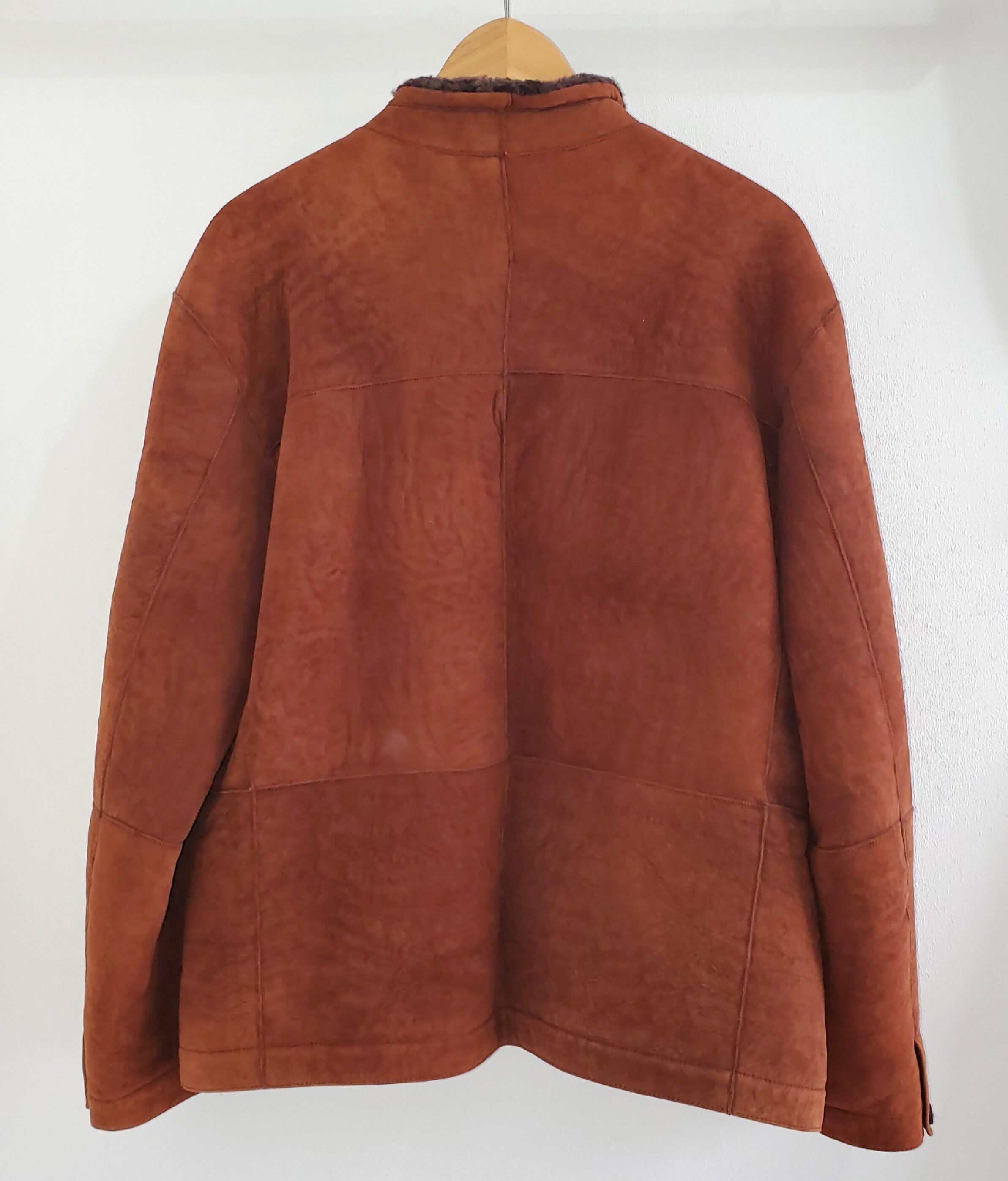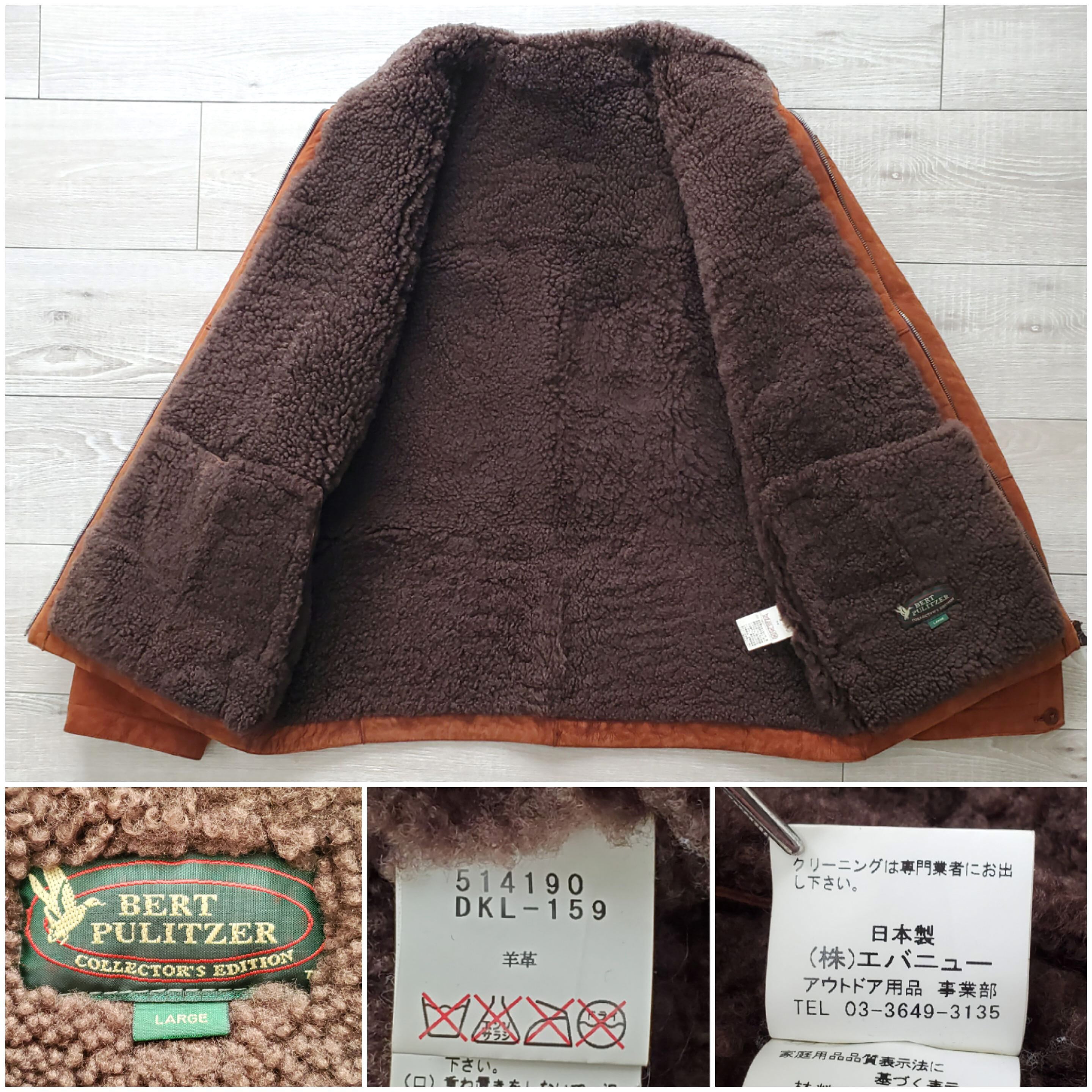 BERT PULITZER バート ピューリッツァー■美品 1990s 後期 日本製 羊革×羊毛 シェアードムートン シアリングジャケット L 茶 シープスキン ヌバック調 短毛 ミドルネック アウトドア 本革 スエード レザー シングル リアル No221870