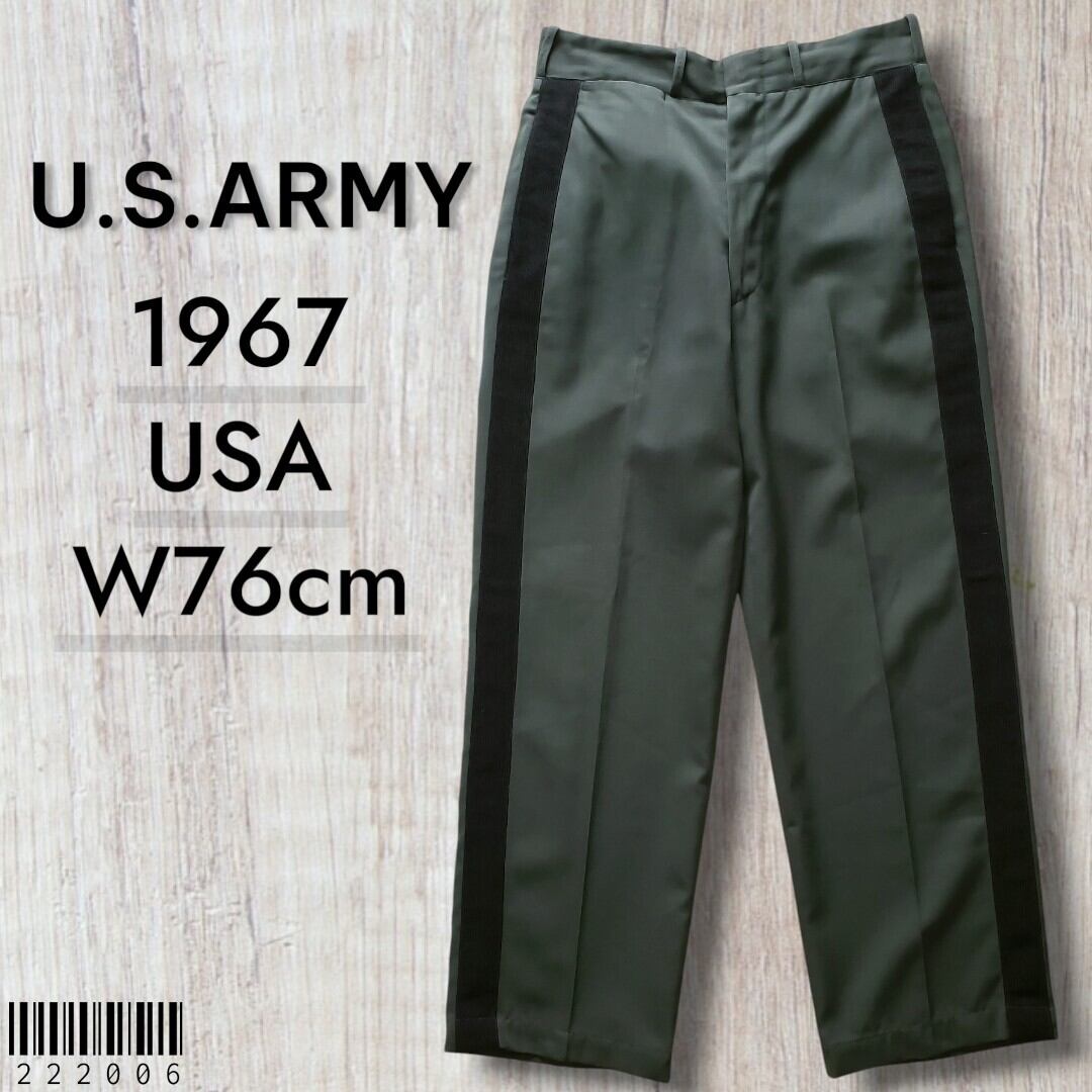 U.S. ARMY アメリカ陸軍■良品 1967年 士官学校 カデット サイドライン ドレスパンツ W76 米軍実物 オリーブ×黒 アルミTALON 側章 トロピカル ミリタリー チノ オフィサー スラックス トラウザーズ グリーン ヴィンテージ No222006