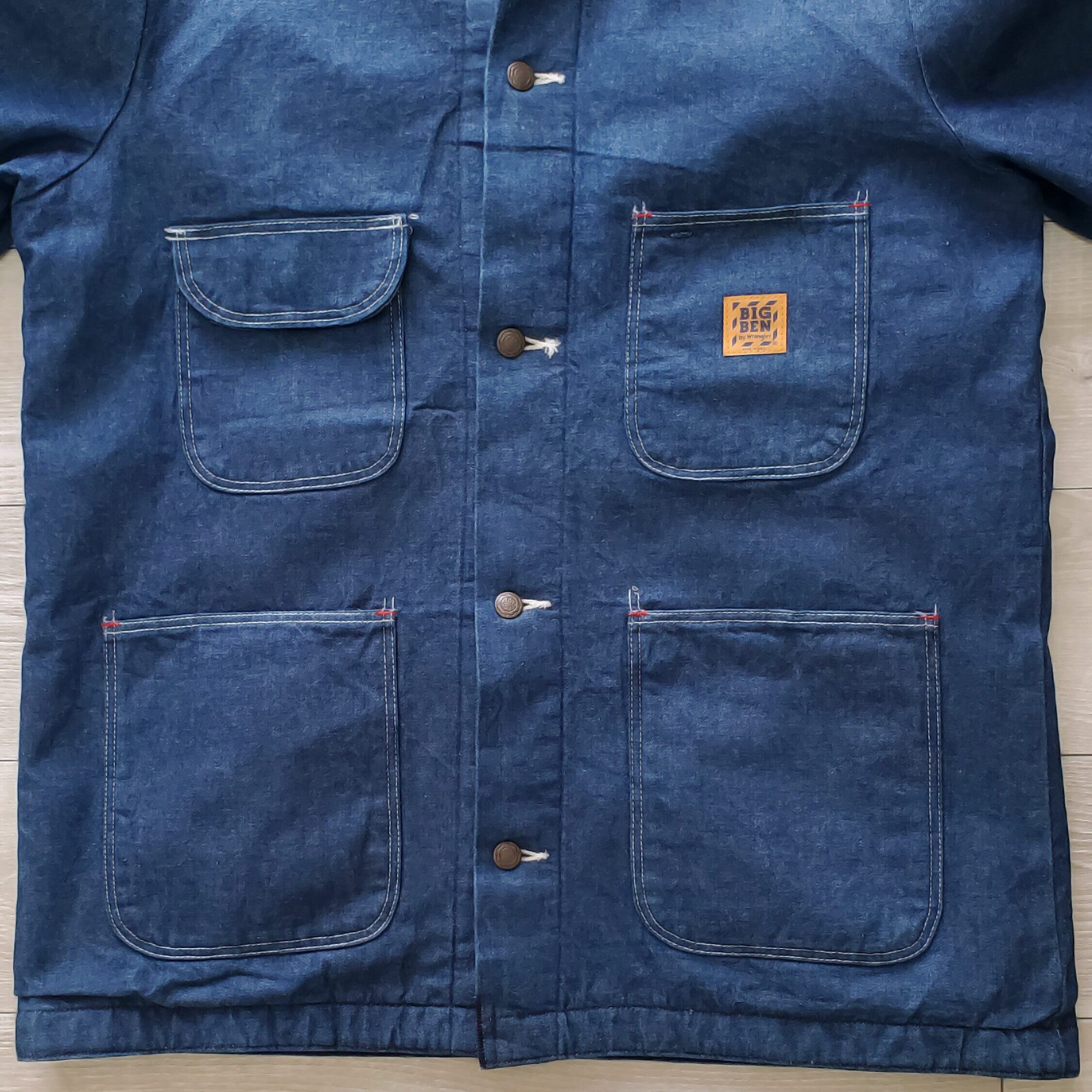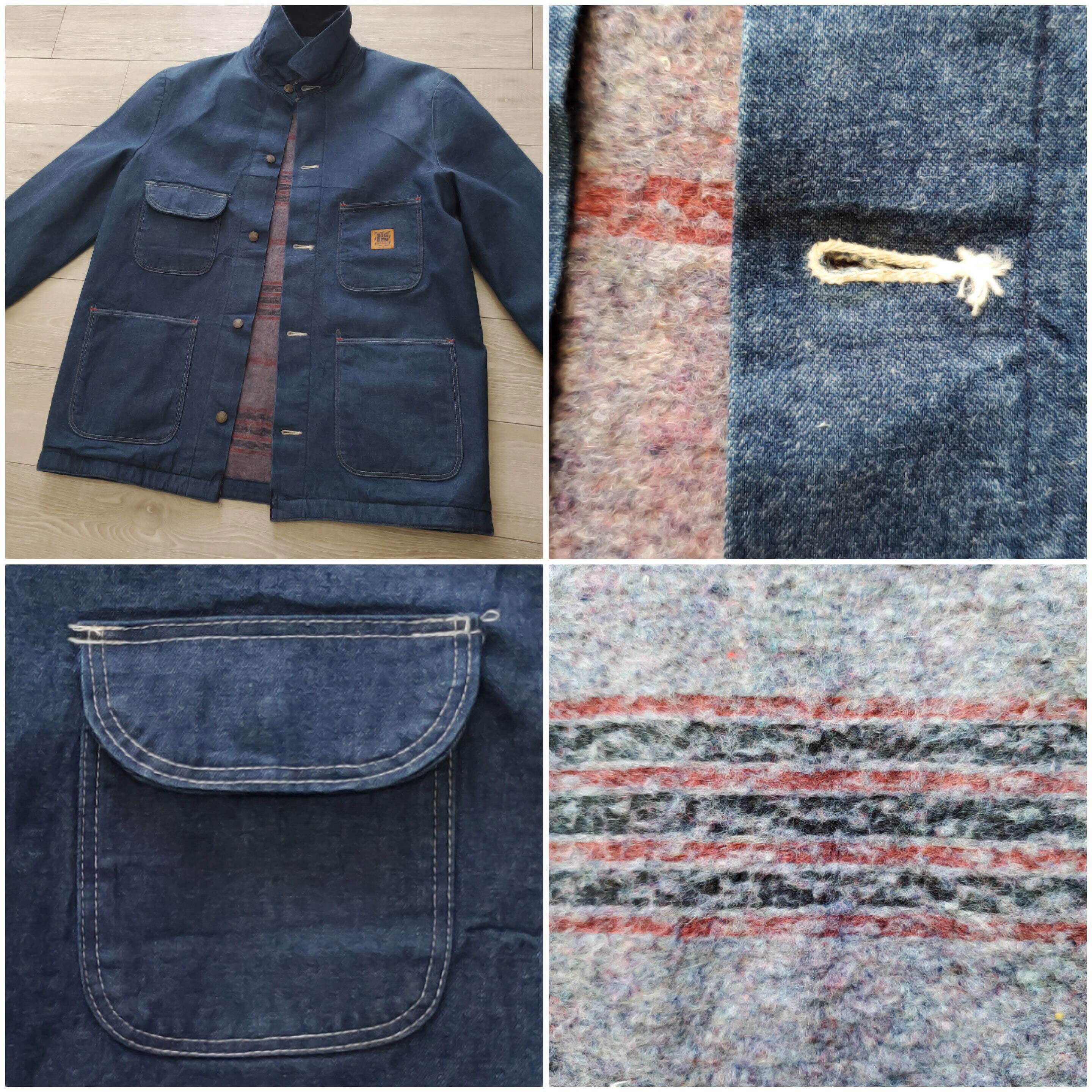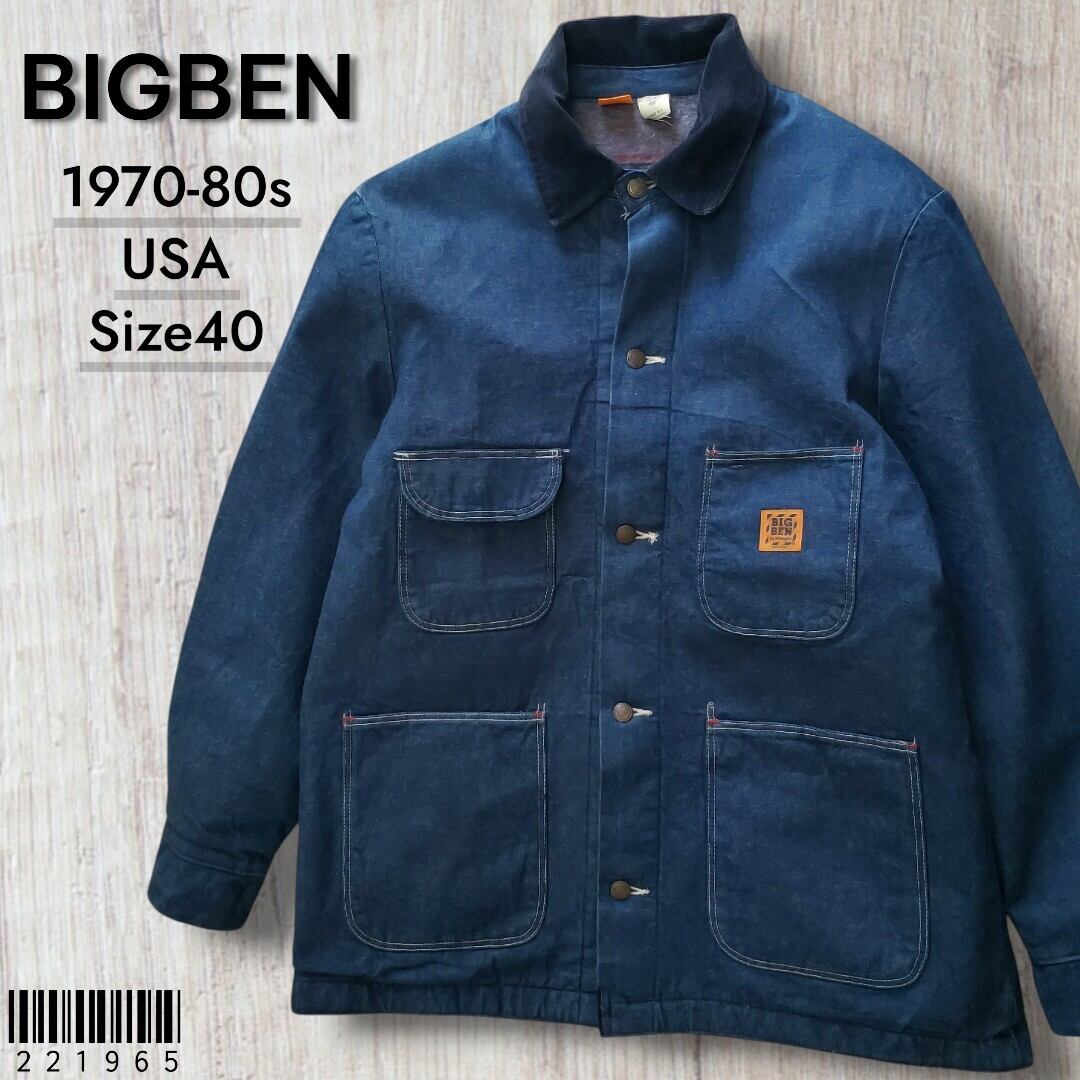 BIGBEN by Wrangler ビッグベン ラングラー■極美品 1970-80s vintage USA製 バットダイ デニム カバーオール 裏地ブランケット 40 インディゴ 濃紺 フランネル ライナー No221965
