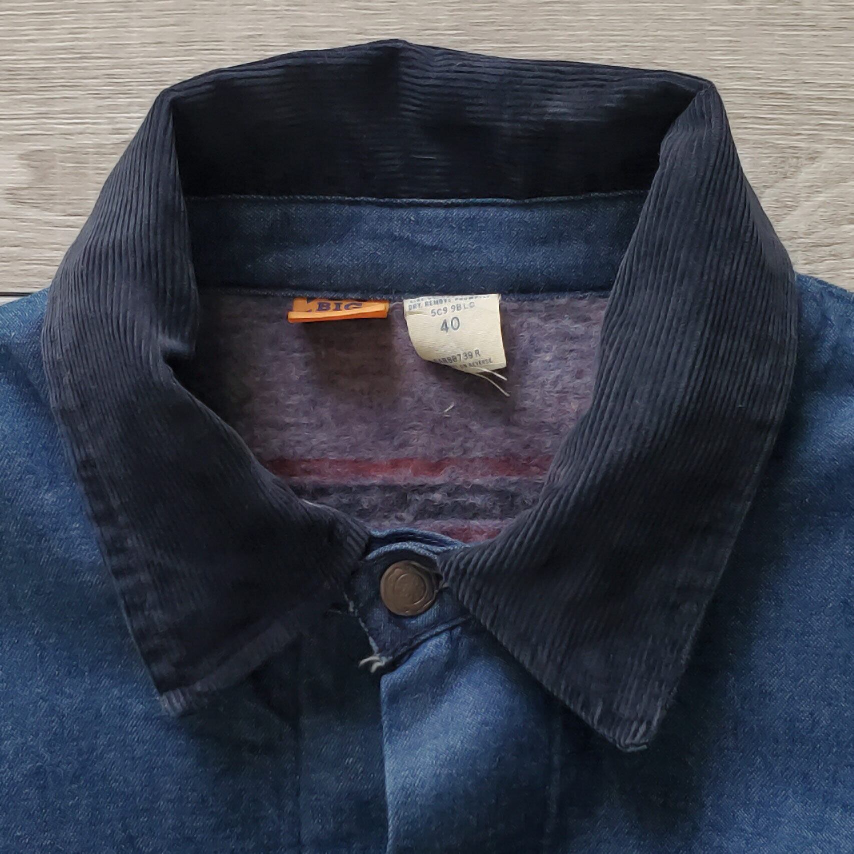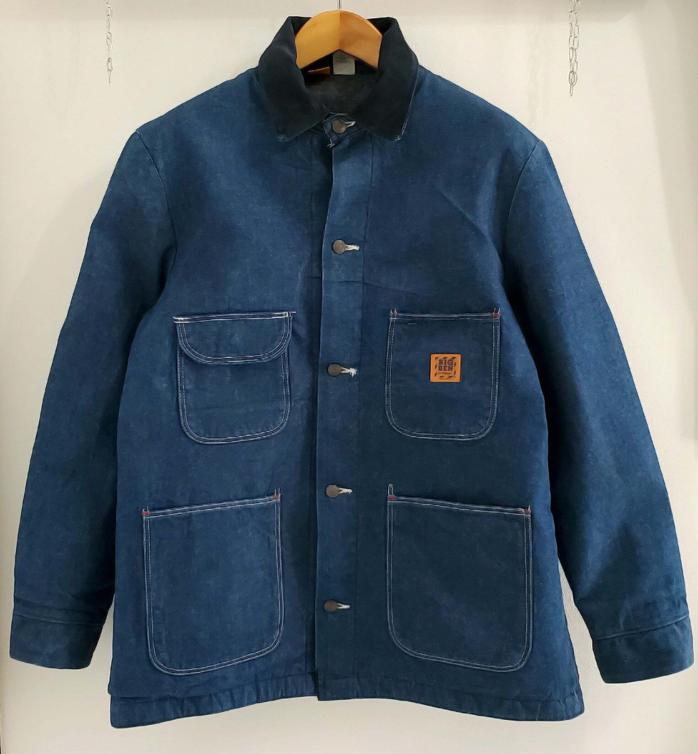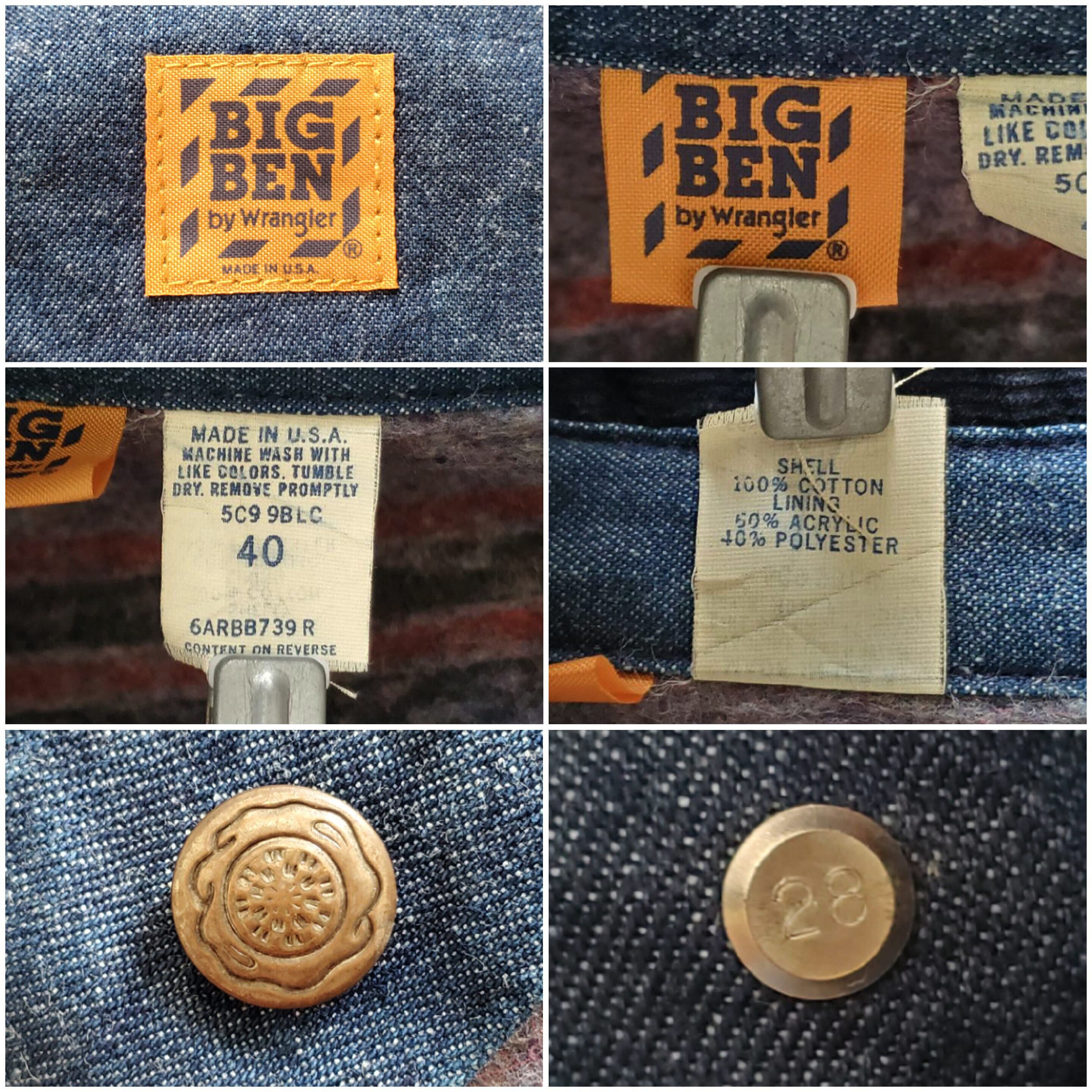 BIGBEN by Wrangler ビッグベン ラングラー■極美品 1970-80s vintage USA製 バットダイ デニム カバーオール 裏地ブランケット 40 インディゴ 濃紺 フランネル ライナー No221965