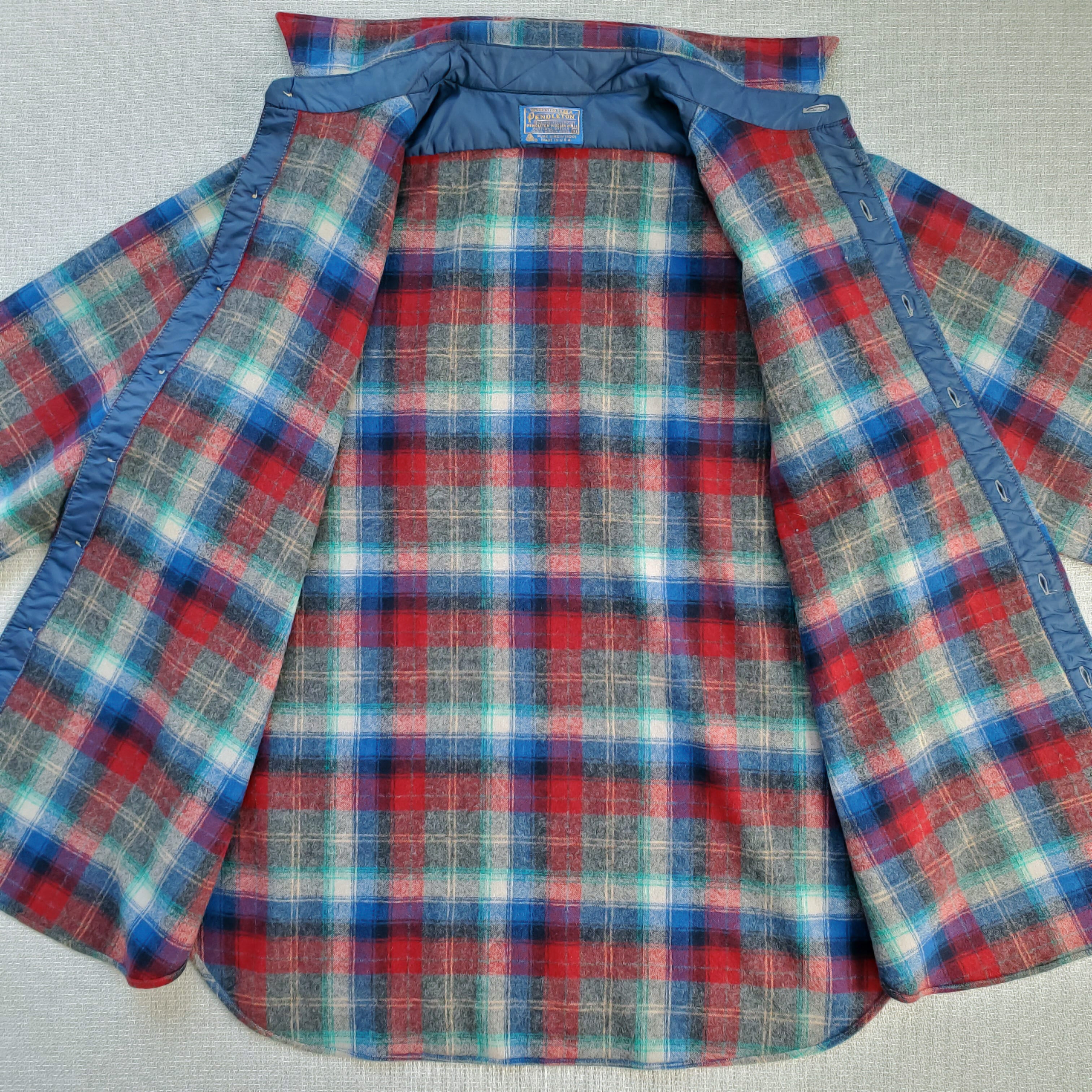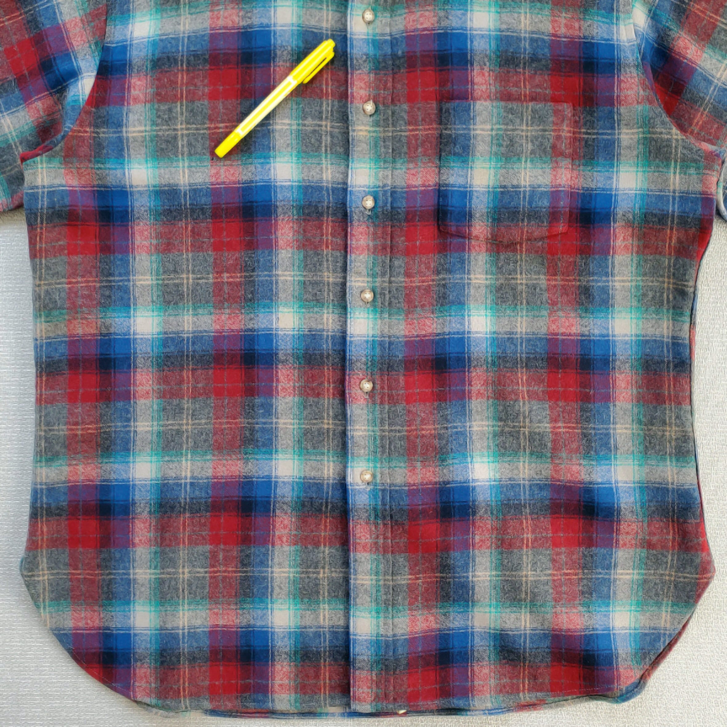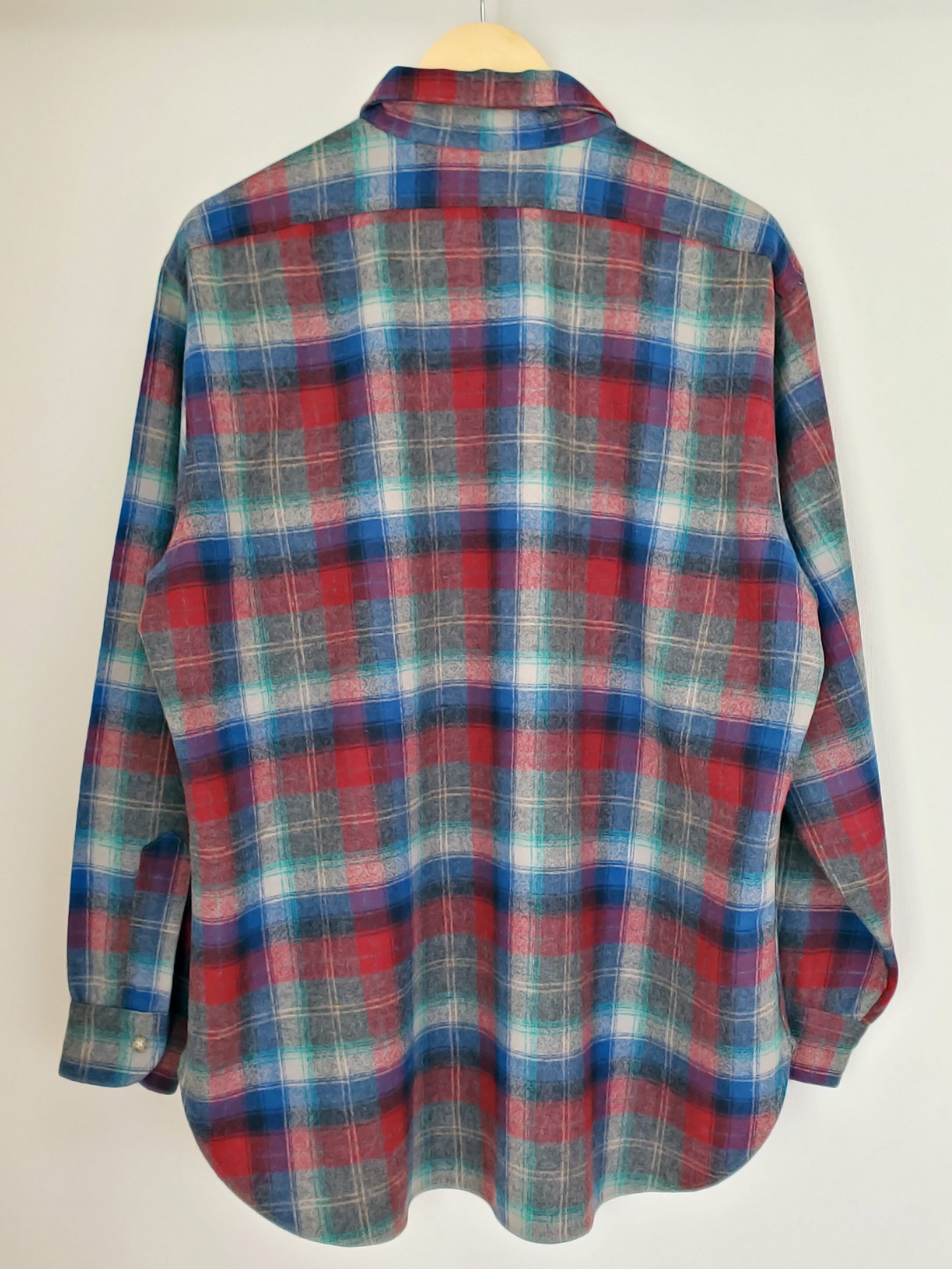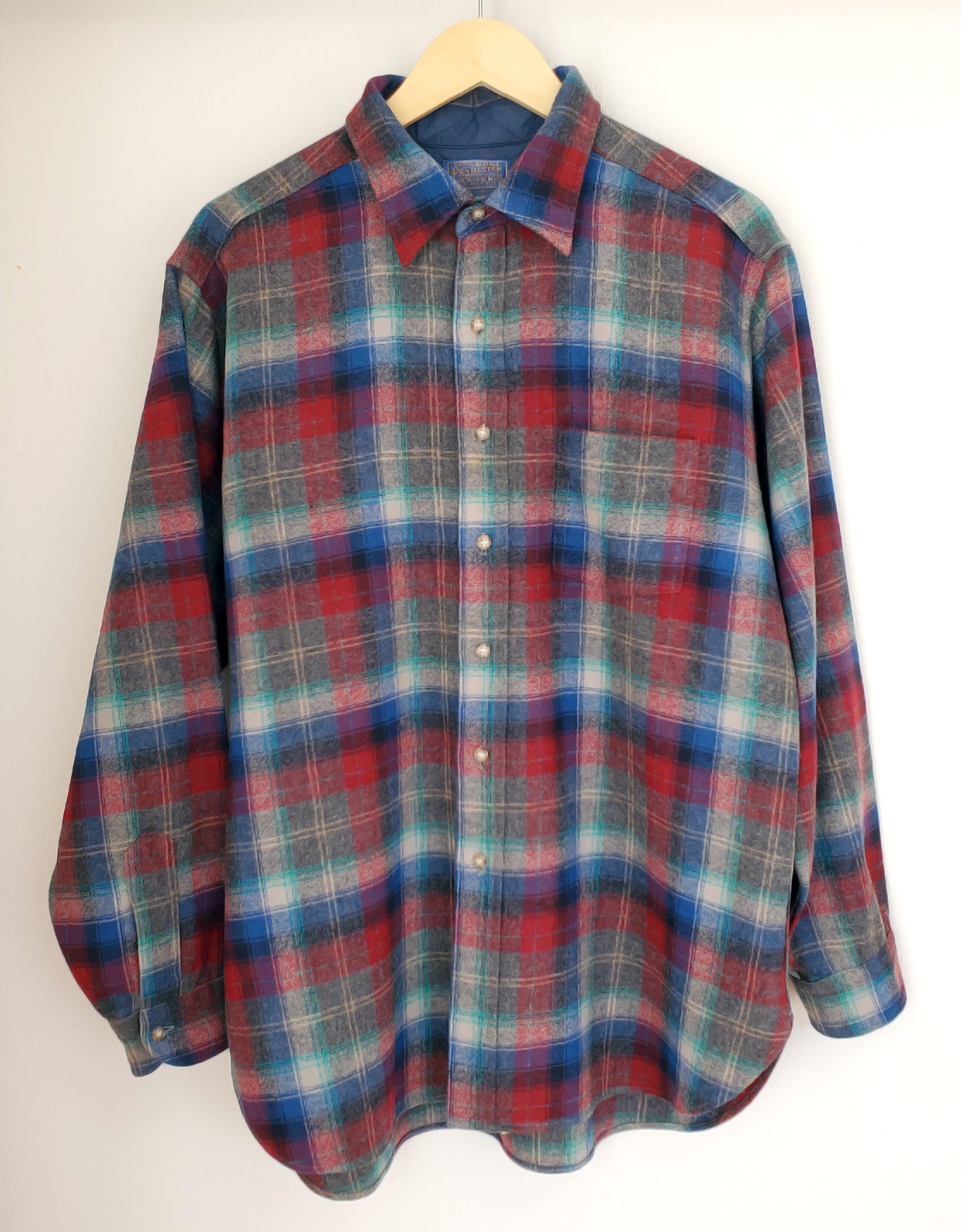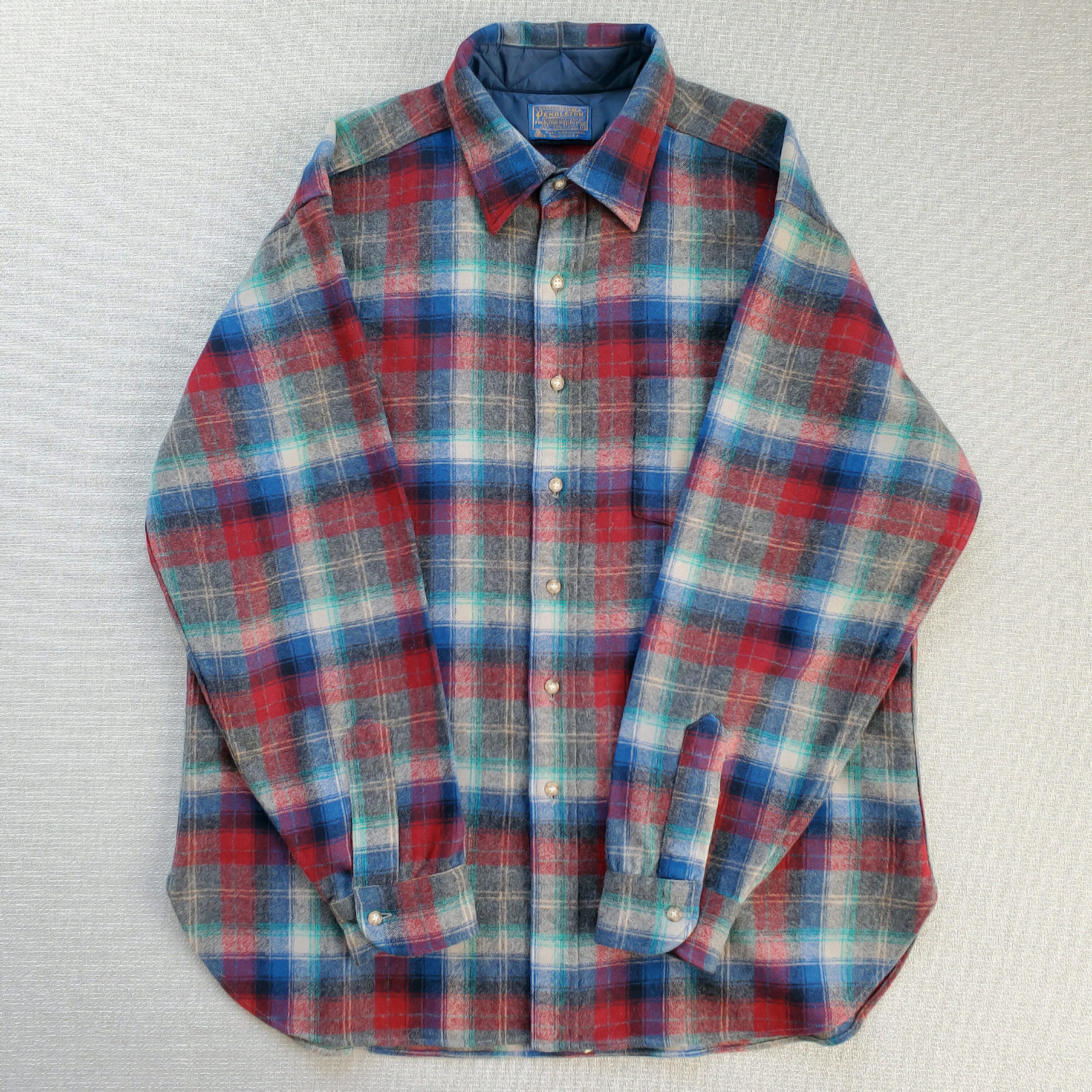 PENDLETONペンドルトン■美品 1970s vintage USA製 Lodge Shirt ロッジシャツ XL 長袖 ピュアヴァージンウール 好配色 灰×青×赤 ブロックチェック プラッド タータン グラデーション シャドー フランネル ボードシャツ No222251