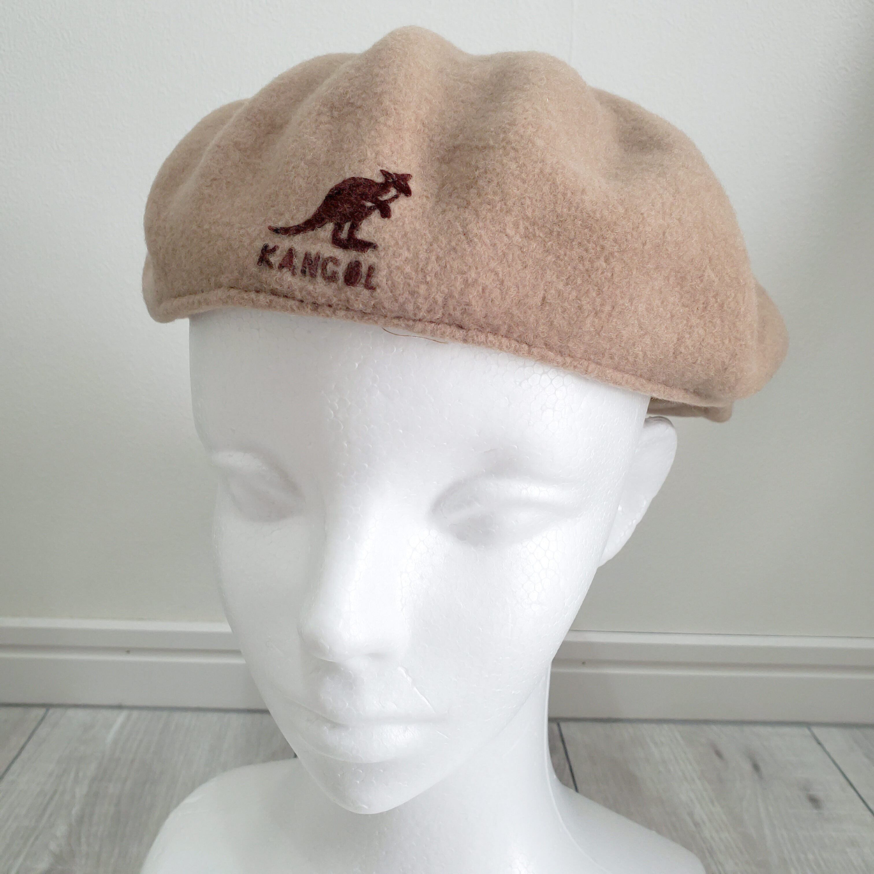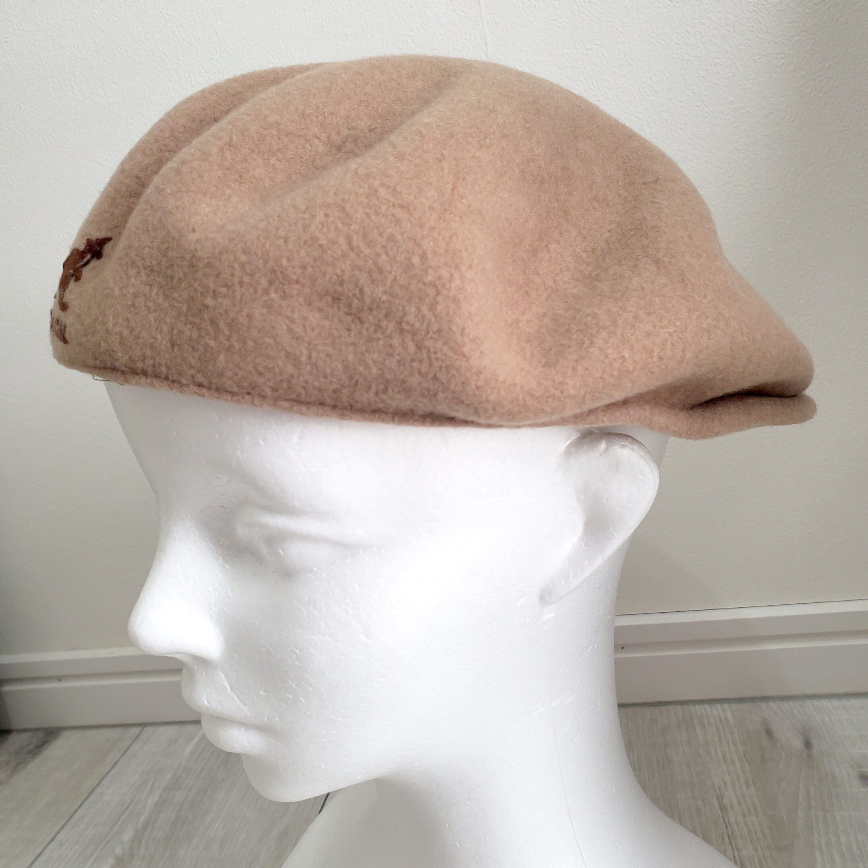 KANGOLカンゴール■美品 1990s vintage UK製 WOOL CAP 504 ウール ハンチング ベレー帽 L ベージュ キャップ イングランド イギリス 英国 キャメル No222204