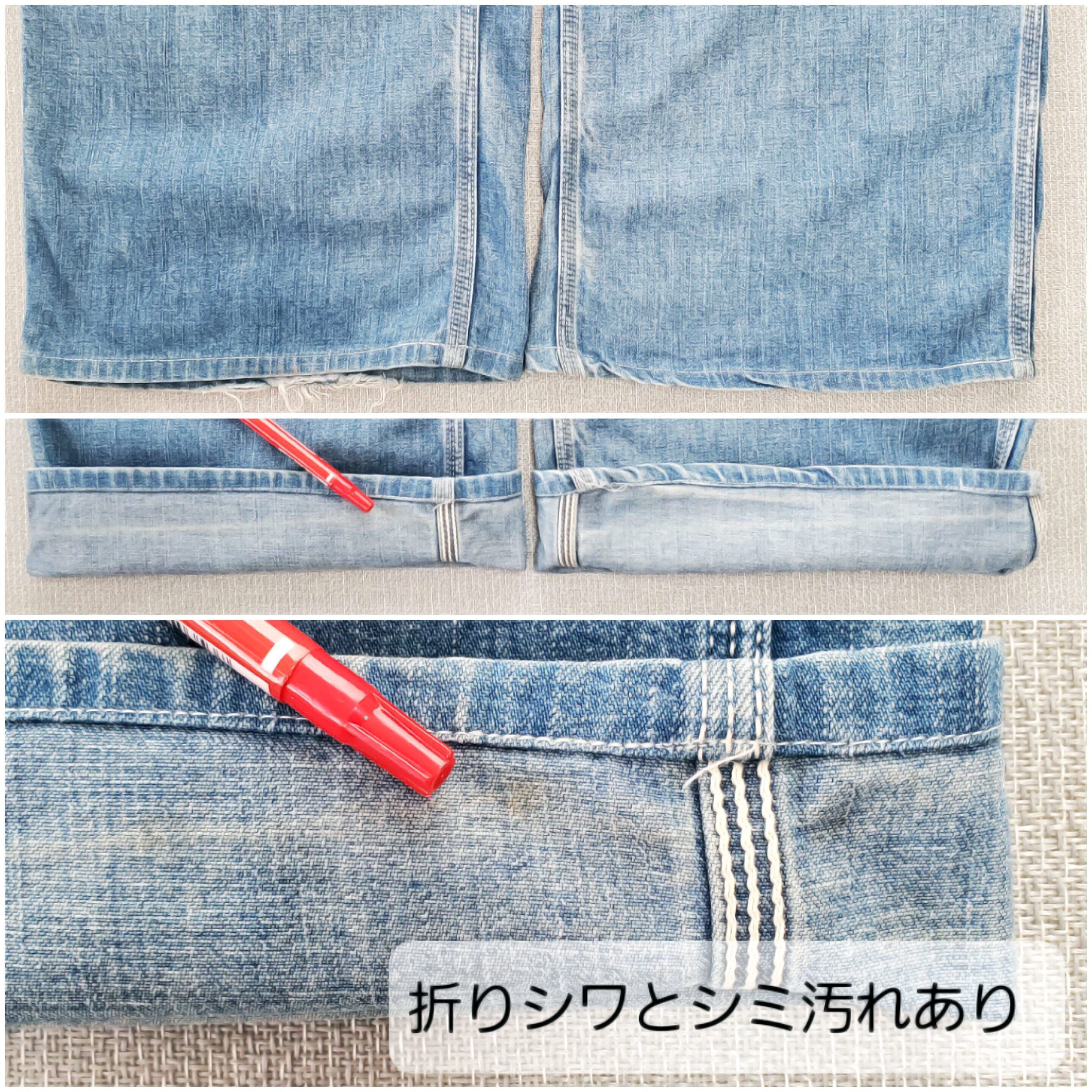 裾にダメージがありますが、ロールアップすることで目立たず着用可能です。