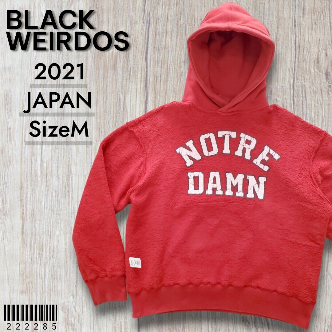 BLACKWEIRDOSブラックウィドー■良品 2021年 日本製 Reversible Hooded Sweatshirt リバーシブル パーカー M 赤 ビッグシルエット カレッジロゴ プリント ヘビーウェイト 定価28600 No222285