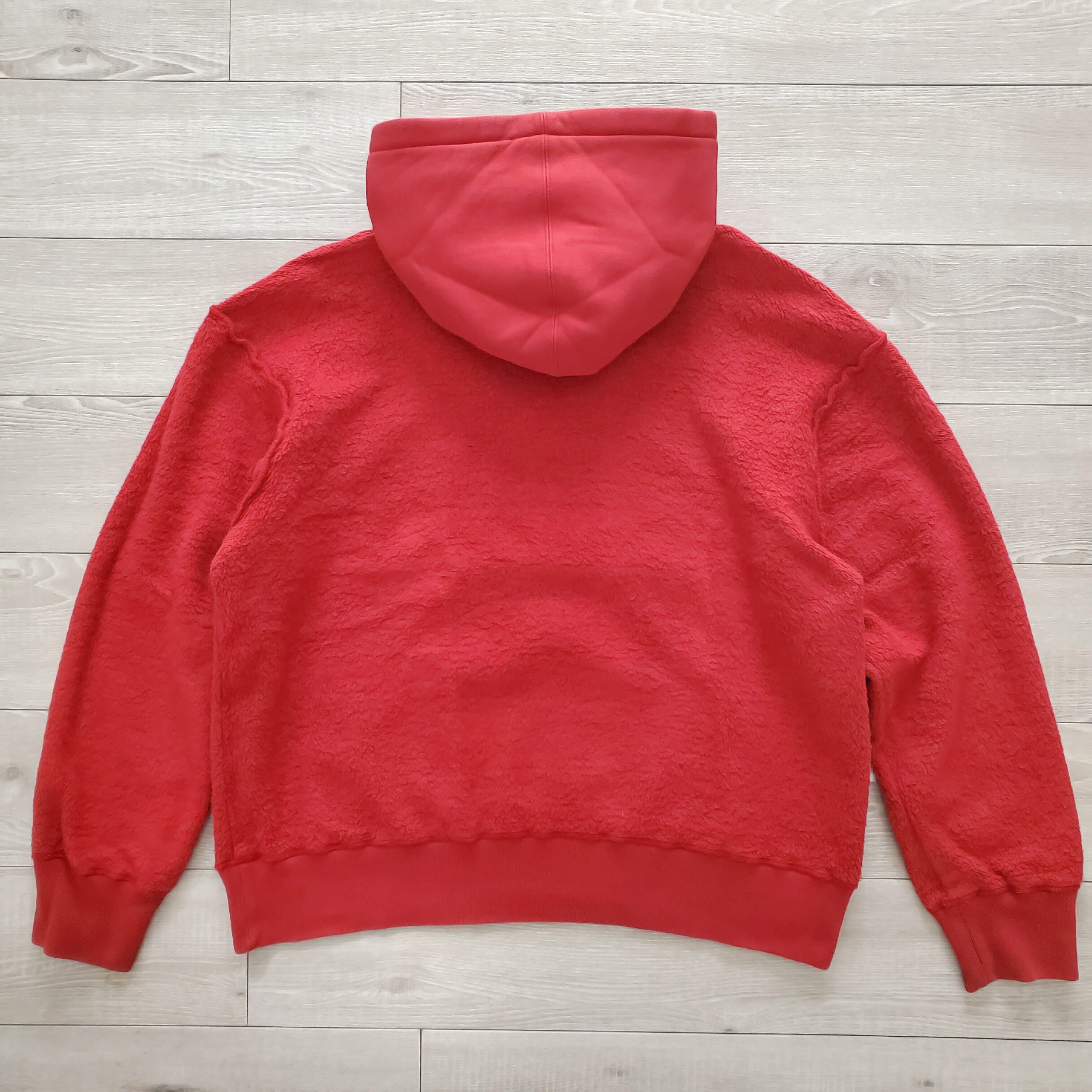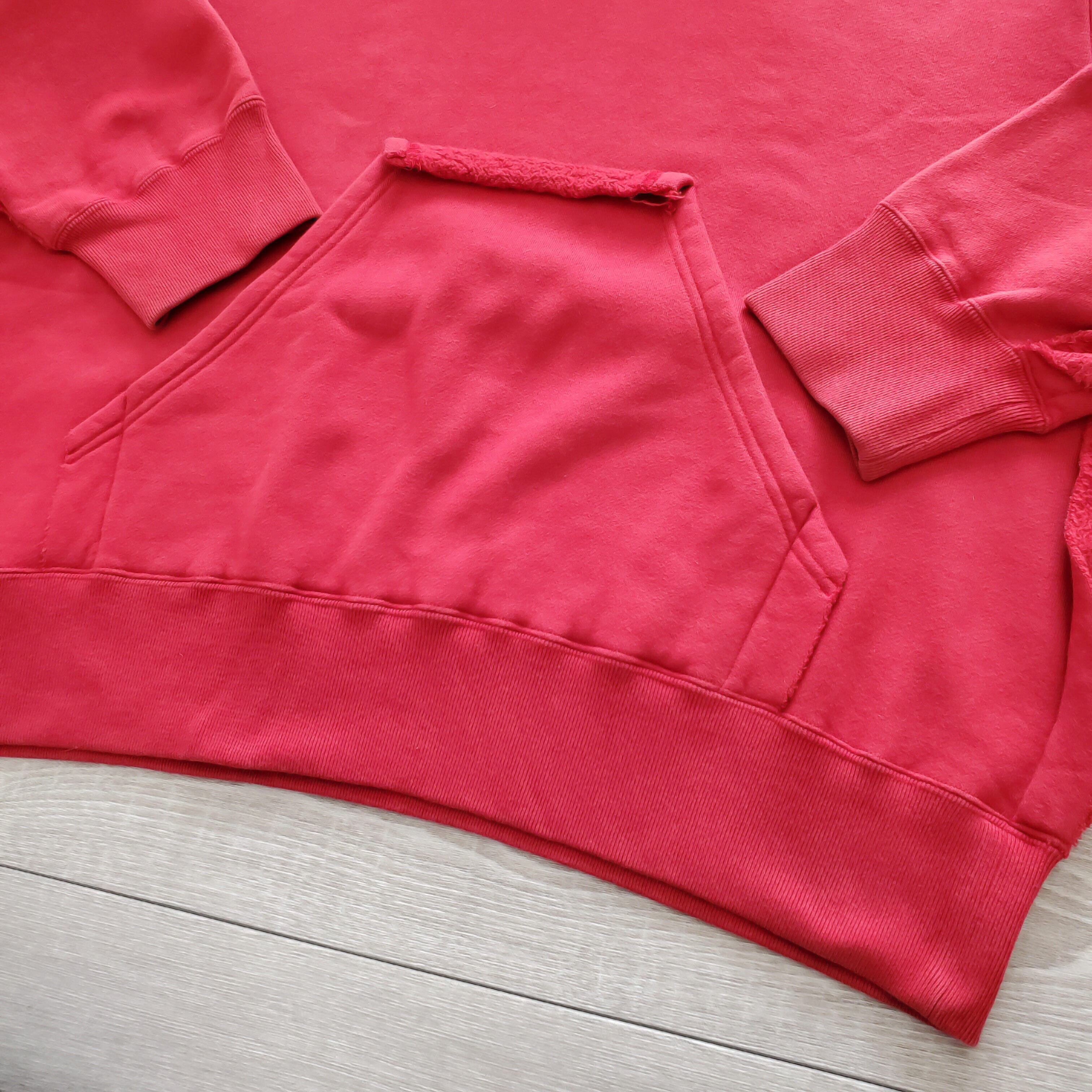 表面は、脇袖やカンガルーポケット部分に裏地の縫製をあえて表に出したデザインが特徴的で、ブランドらしい「違和感」のある仕上がりに。