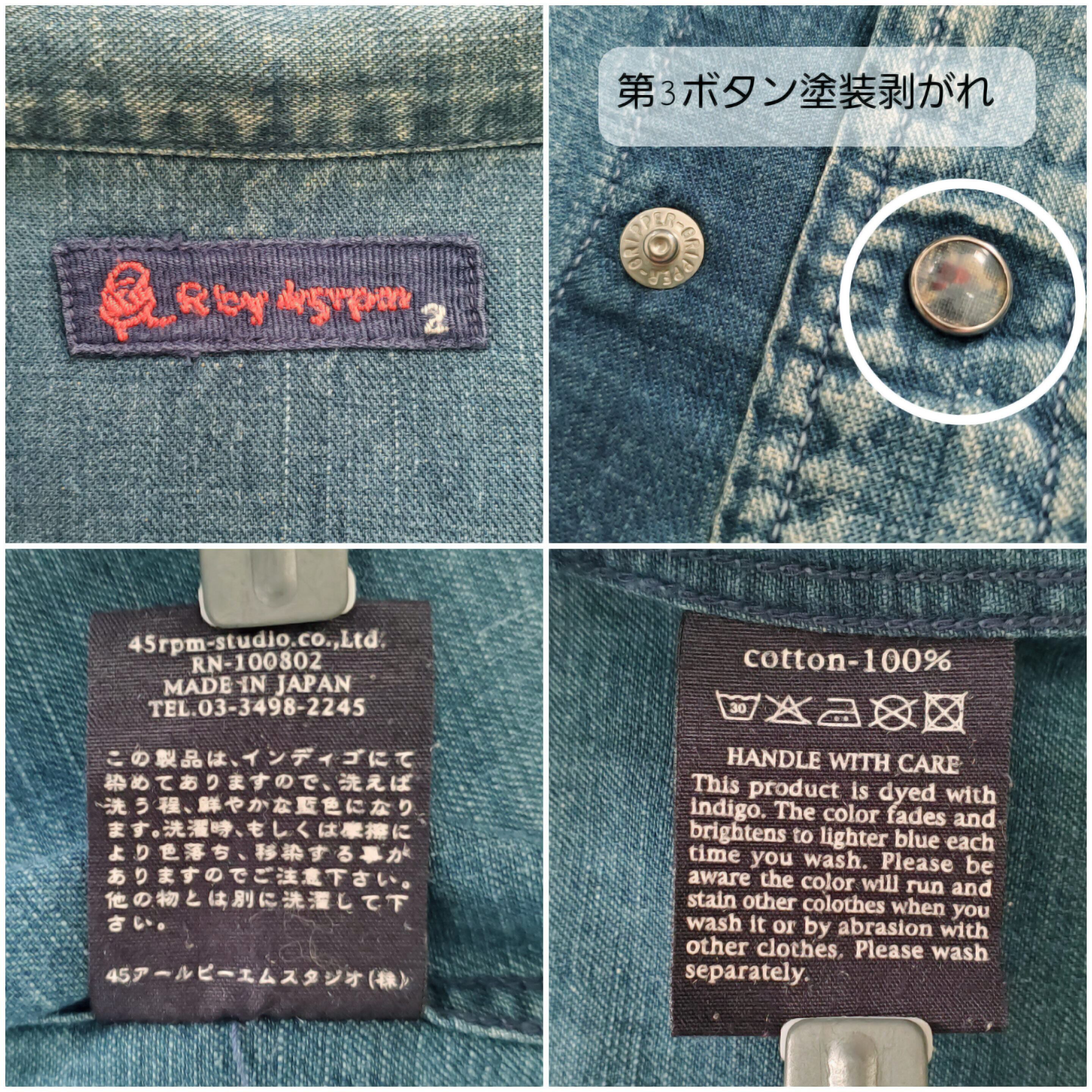 R by 45rpm■美品 2000s 日本製 ヴィンテージ加工 デニム ウエスタンシャツ 2 インディゴ R刺繍 USED ライトオンス 藍 アールバイフォーティーファイブアールピーエム No222160