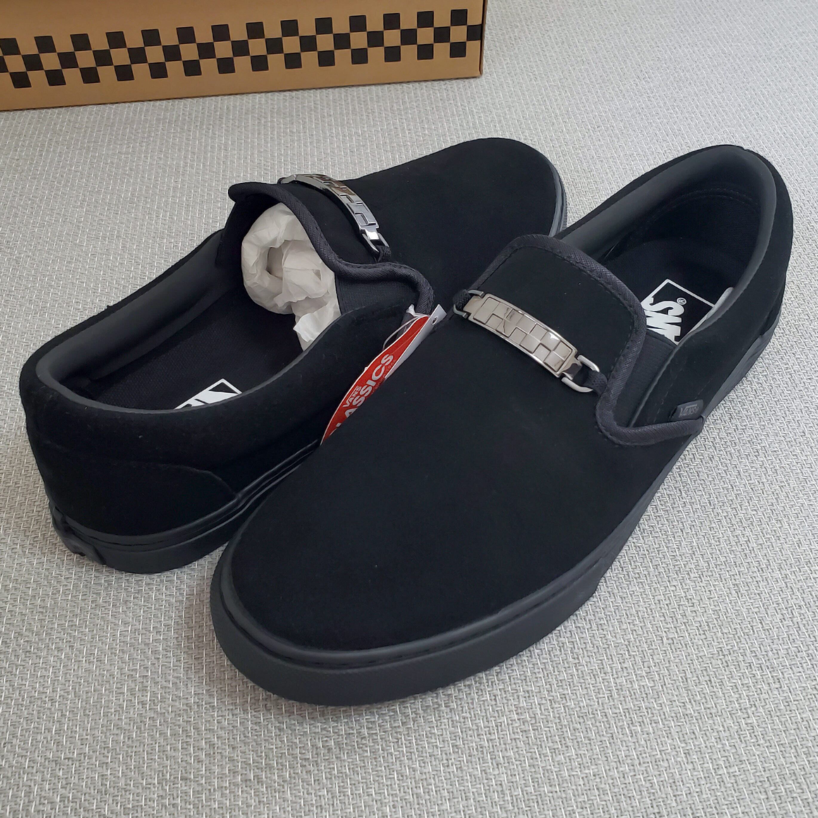 VANSバンズ■新品未使用 2025年 日本企画 廃版 SLIP ON スリッポン V98CF CHN BLACK 本革 オールスエード US9H JP27.5 黒 モカシン ローファー レザー デッキシューズ No222144